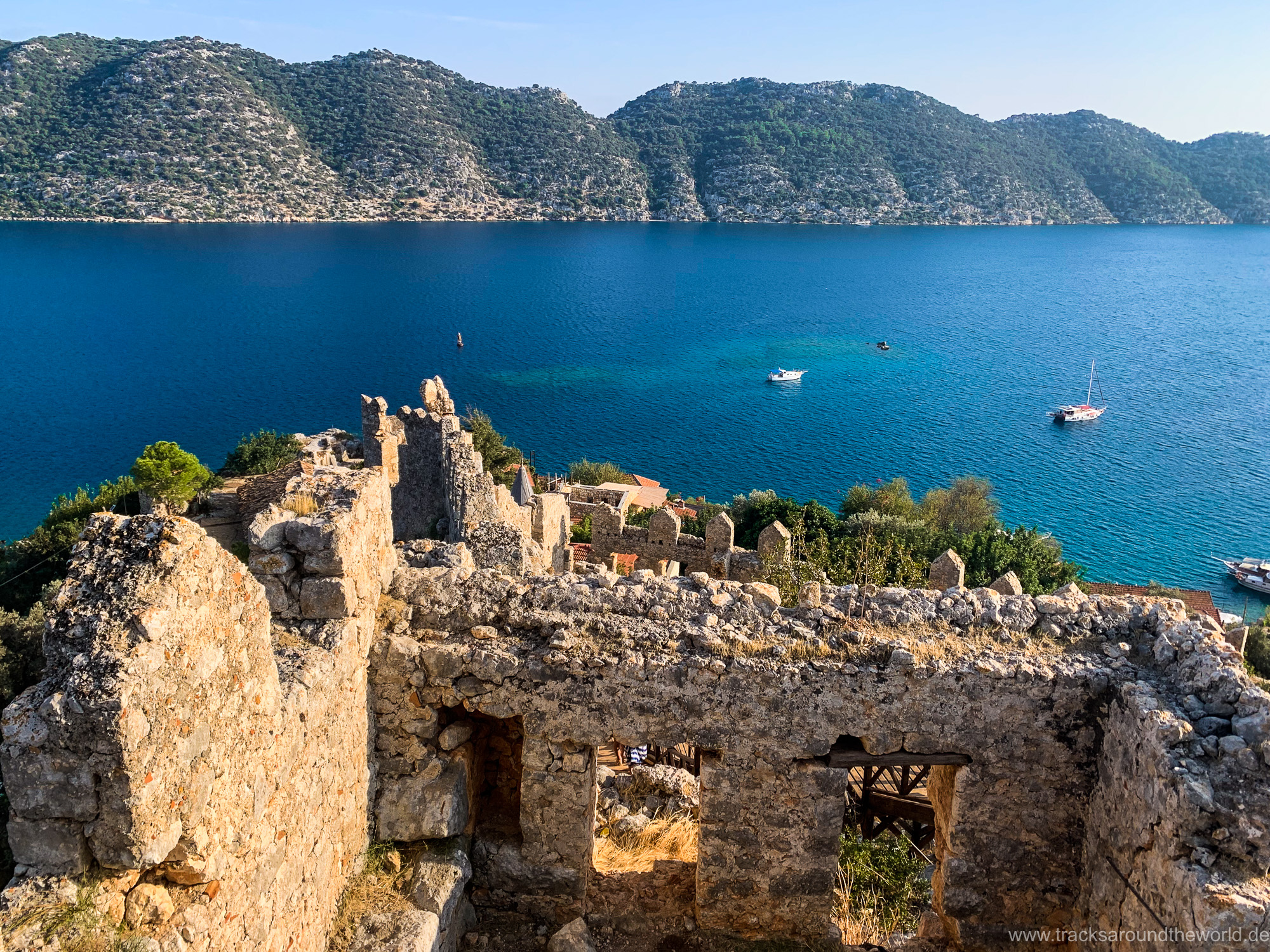 Nach Stadt- und antikem Kulturprogramm sehnen wir uns nach Natur, Einsamkeit und Ruhe. Diese finden wir am Salda Gölü, einem türkisfarbenen Bergsee der aufgrund seiner Farbe auch das „Malediven der Türkei“ genannt wird. Hier verbringen wir einen entspannten Tag, bevor es an die lykische Küste geht. Sie gilt als die schönste Küste der Türkei, fällt doch das Taurus-Gebirge mit seinen über 3.000 Meter hohen Bergen steil an die zerklüftete Küste ab. Bei uns hinterlässt sie gemischte Gefühle. Zum einen enttäuschen die hochtouristischen Gegenden (und hier vor allem der, aus allen Reiseprospekten bekannte, angebliche „Bilderbuchstrand“ bei Fethiye/Ölüdeniz), zum anderen gibt es aber auch durchaus noch charmante Örtchen wie Kalkan, Kas oder der 16 km lange, unverbaute Strand von Patara. Das absolute Highlight für uns an der lykischen Küste ist jedoch das mittelalterliche Fischerdorf Simena, das man nur per Pedes oder per Boot erreichen kann: vor allem abends, nachdem die Touri-Boote wieder weggefahren sind, erlebt man eine tolle Stimmung, die uns an die Fischerdörfer auf den Inseln des Titicacasees oder an einsame thailändische Inseln Anfang der 80er Jahre erinnert. Die lykische Küste: zweifelsohne eine Welt der Kontraste.