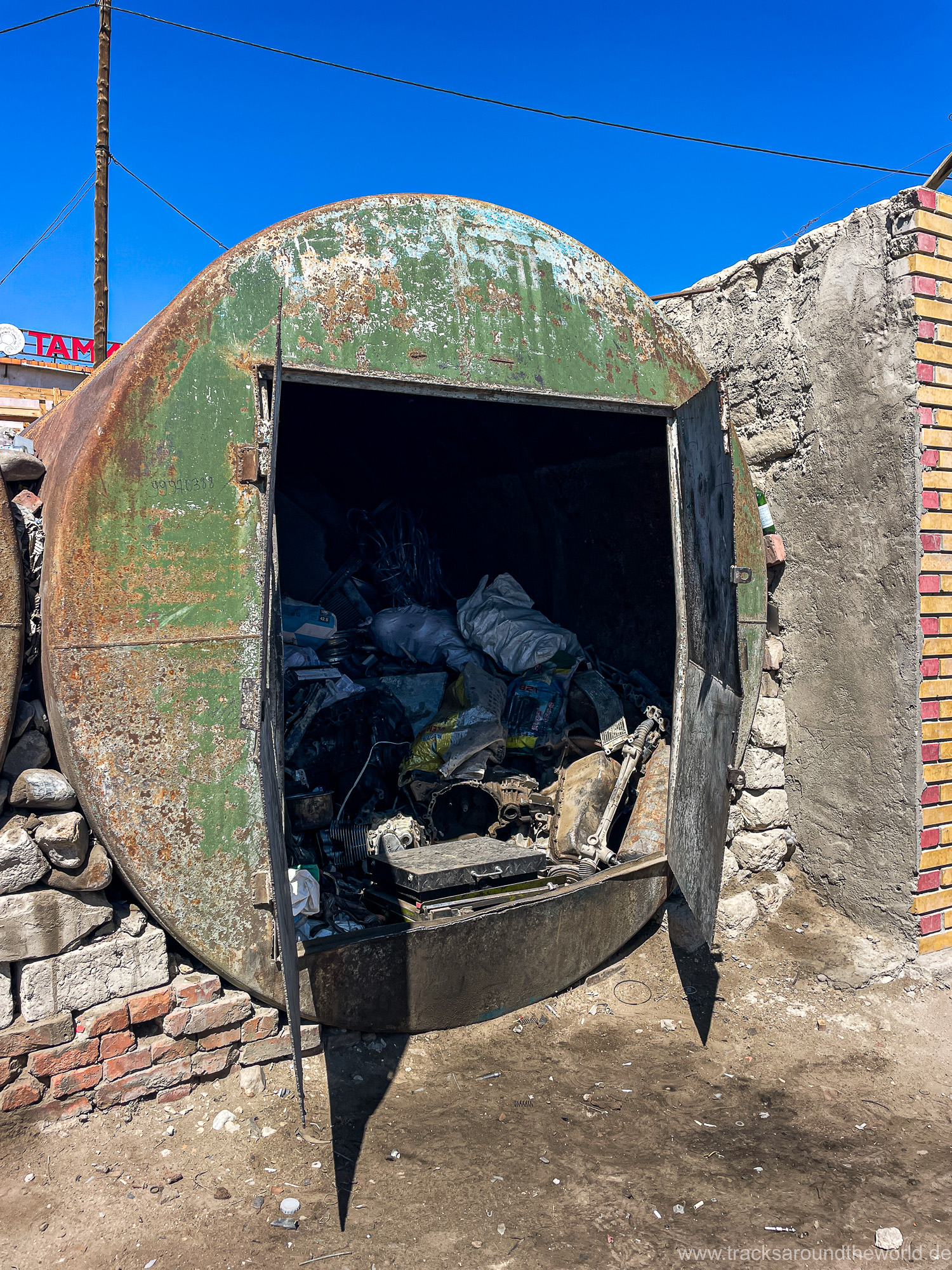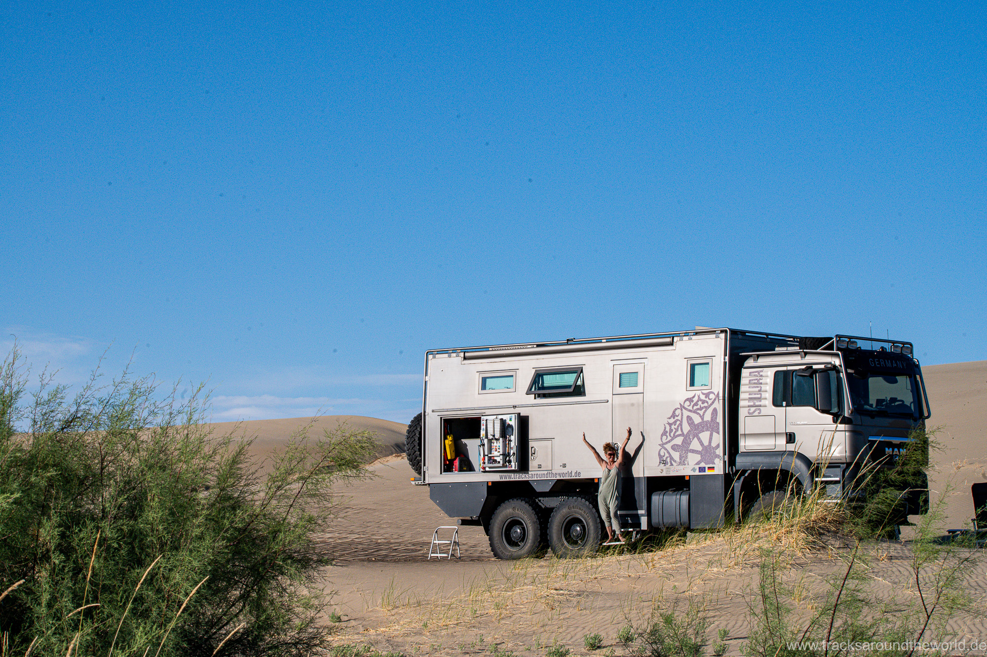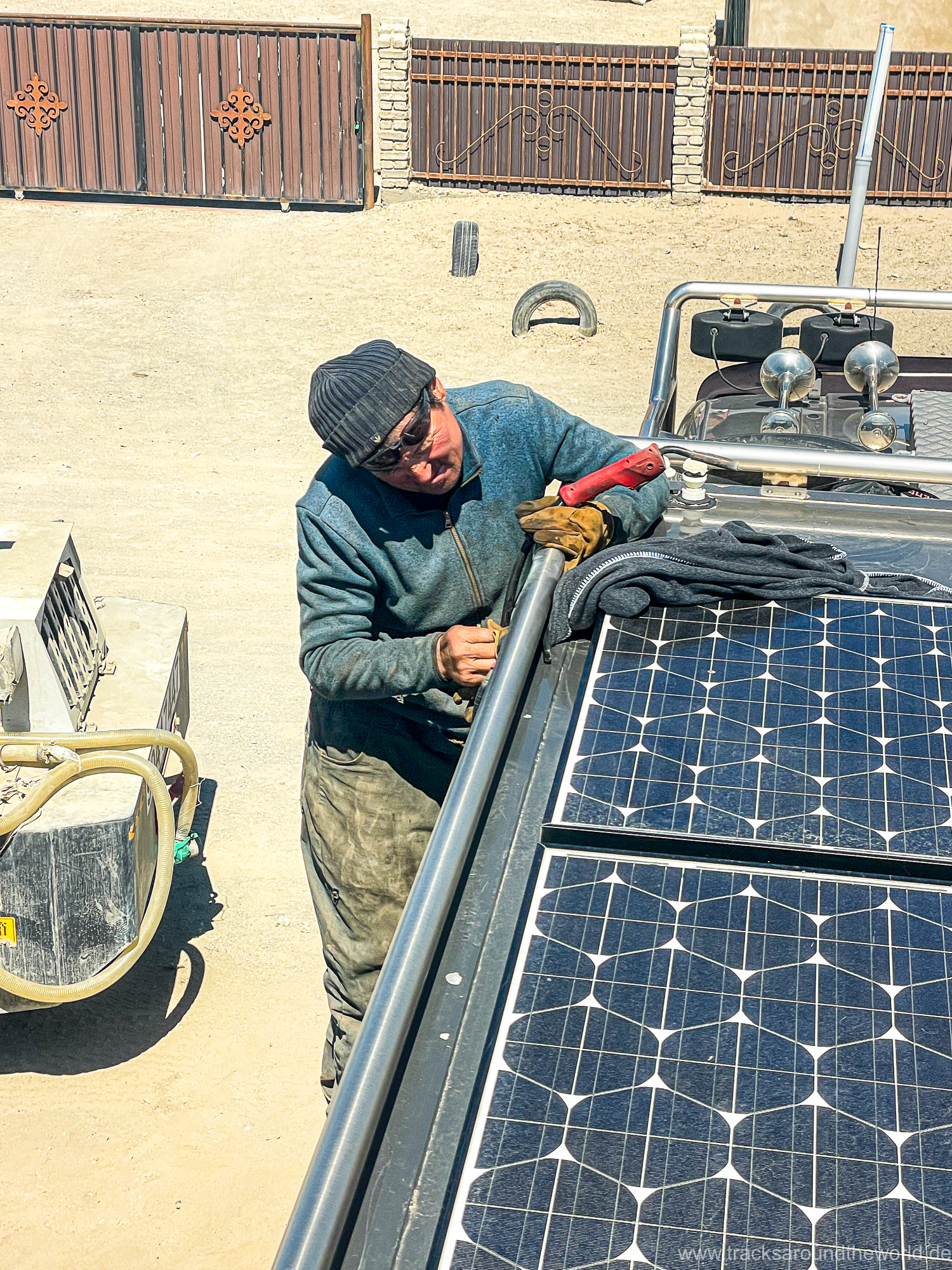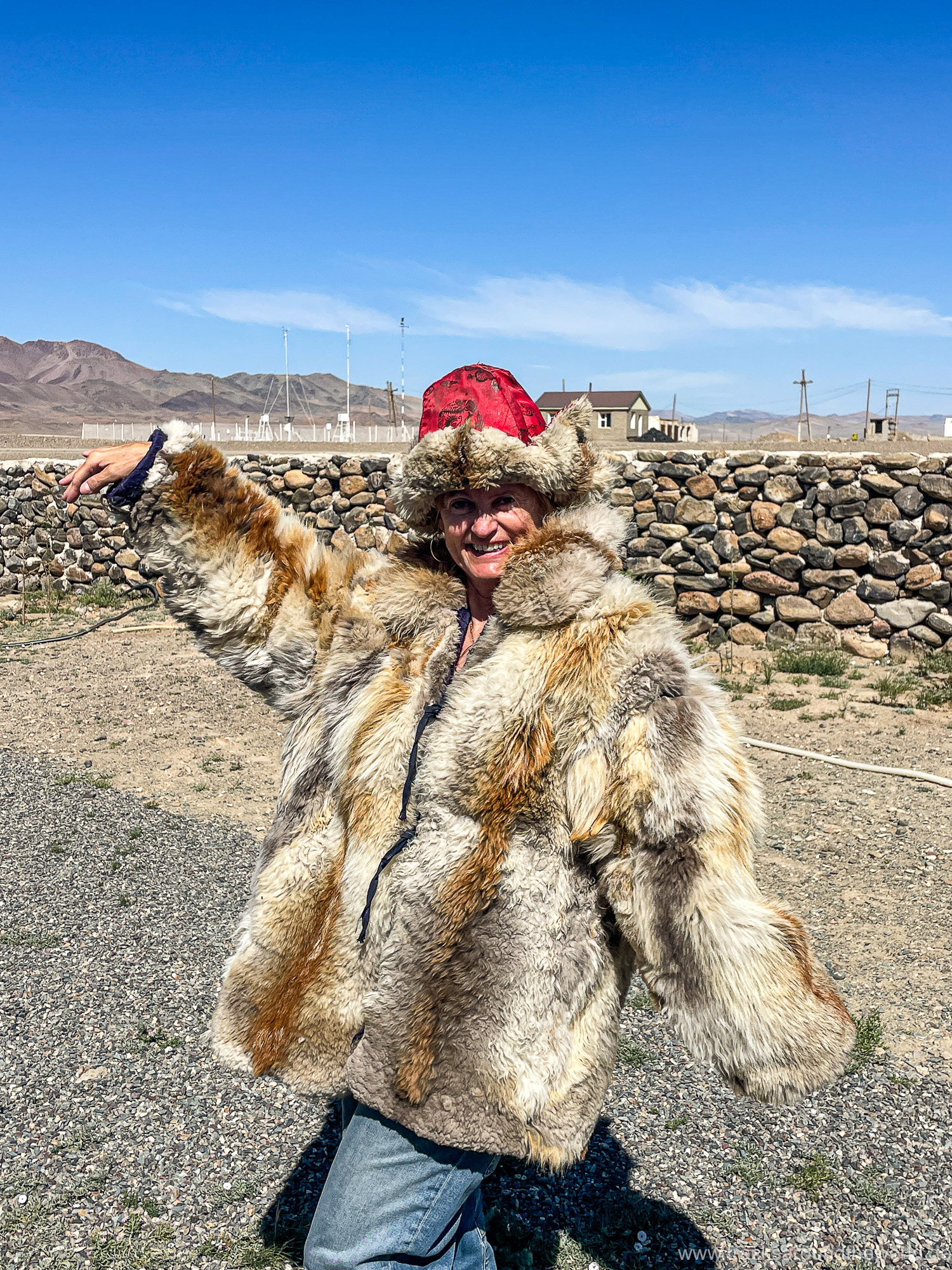 Die erste größere Stadt ist Ölgi. Wir sind überrascht wie vergleichsweise zivilisiert es hier ist: Supermärkte, vernünftige Tankstellen (bei denen man endlich wieder mit Kreditkarte zahlen kann, was in Russland ja wegen der Abkopplung vom internationalen Zahlungssystem nicht möglich war) und sogar ein paar Hochhäuser gibt es. Wir machen nochmals einen Einkauf, gönnen Shujaa die dringend notwendige Wagenwäsche, lassen unseren Astabweiser wieder anschweißen und besuchen das erst kürzlich eröffnete Golden-Eagle-Cultural-Center. Der herbeitelefonierte „Berkutschi“ (Adlermann) kommt in voller Tracht mit seinem Jagd-Stein-Adler in seinem Toyota Hybrid Prius zu uns angebraust.