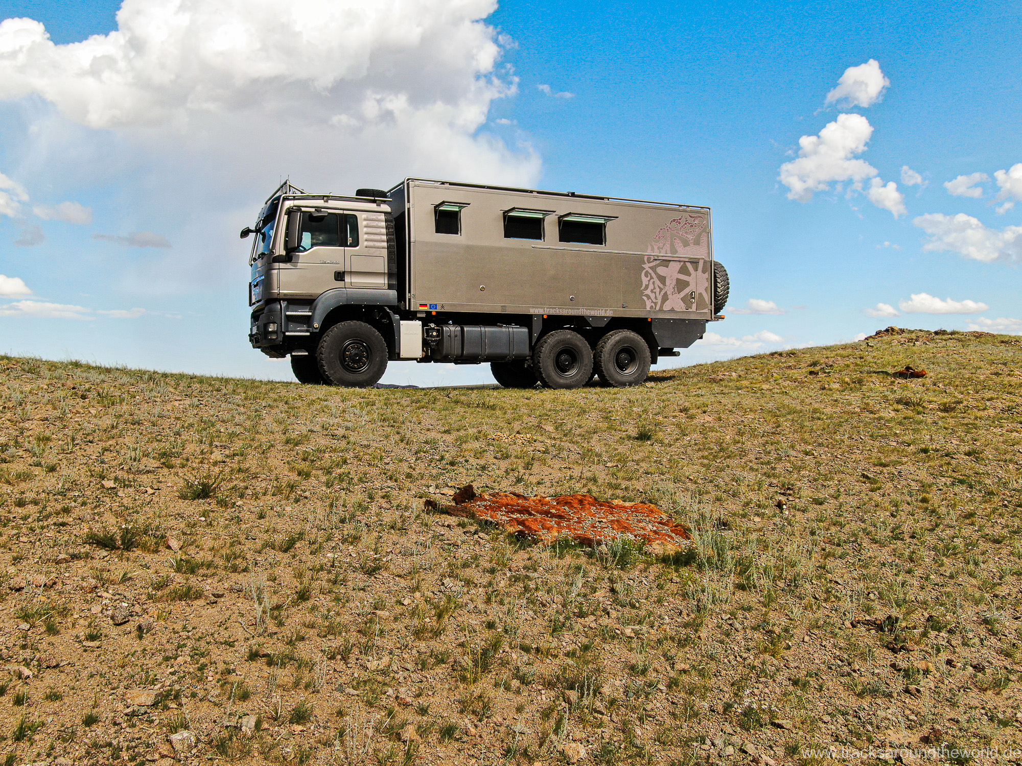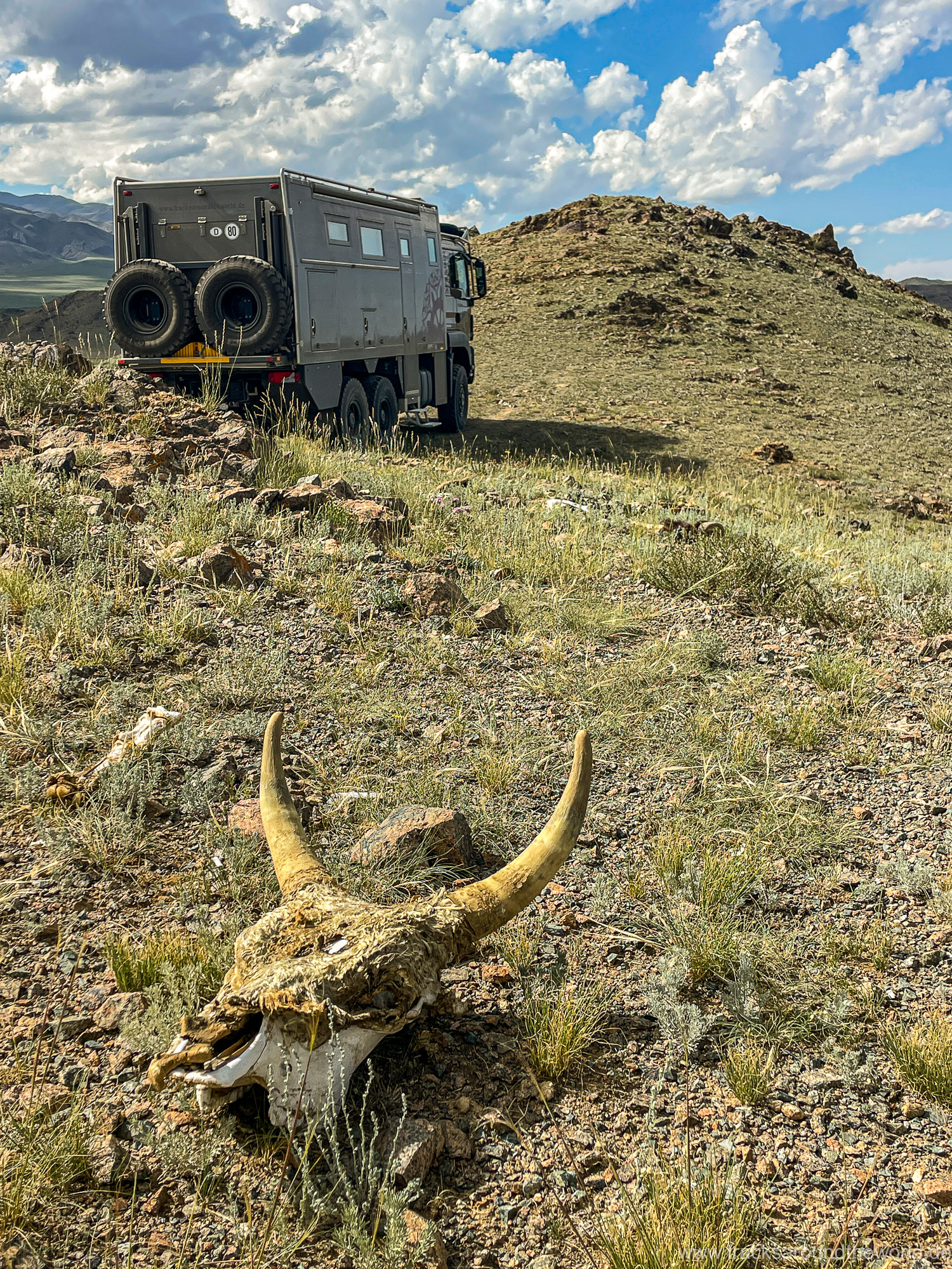 Nach über sieben Stunden – unserem längsten Grenzübergang auf über 300.000 km um die Welt – sind wir in die Mongolei eingereist. Herrschten auf russischer Seite des Grenzübergangs noch Disziplin und Ordnung, empfängt uns die Mongolei mit wildem Drängeln und respektlosen Diskussionen mit der Obrigkeit. Das kann ja heiter werden – wir selbst werden aber sehr zuvorkommend abgefertigt und diesmal ist die gewählte LKW-Abfertigungs-Spur der Joker: wir „überholen“ viele Fahrzeuge, die auf russischer Seite noch weit vor uns gestanden sind.