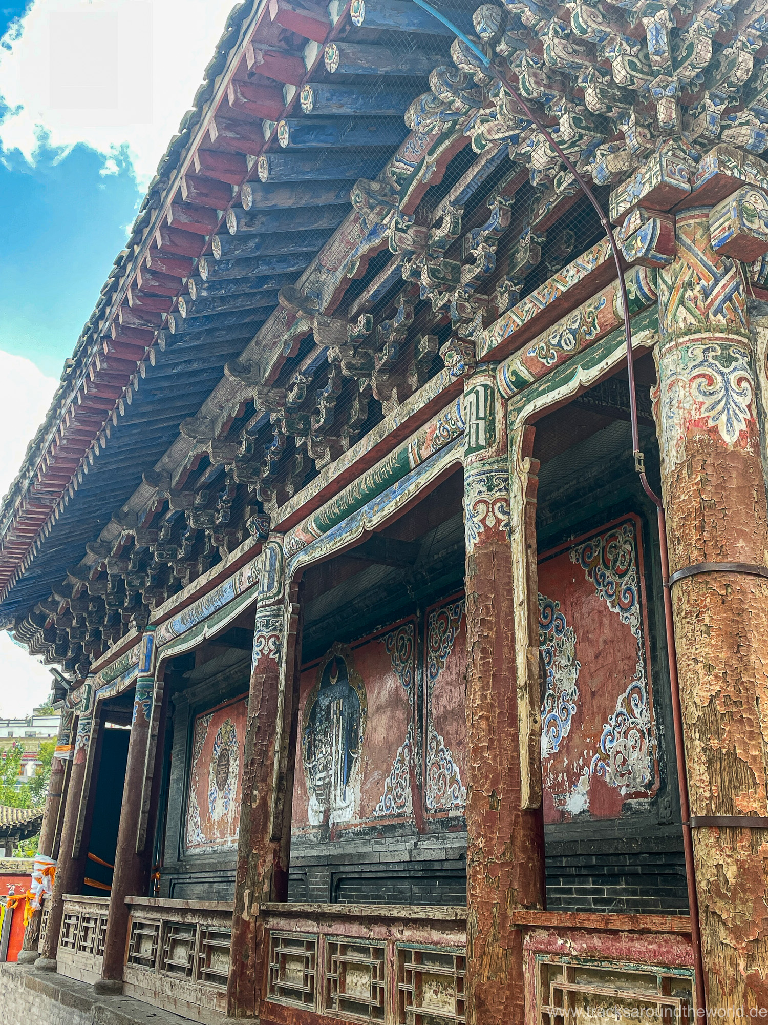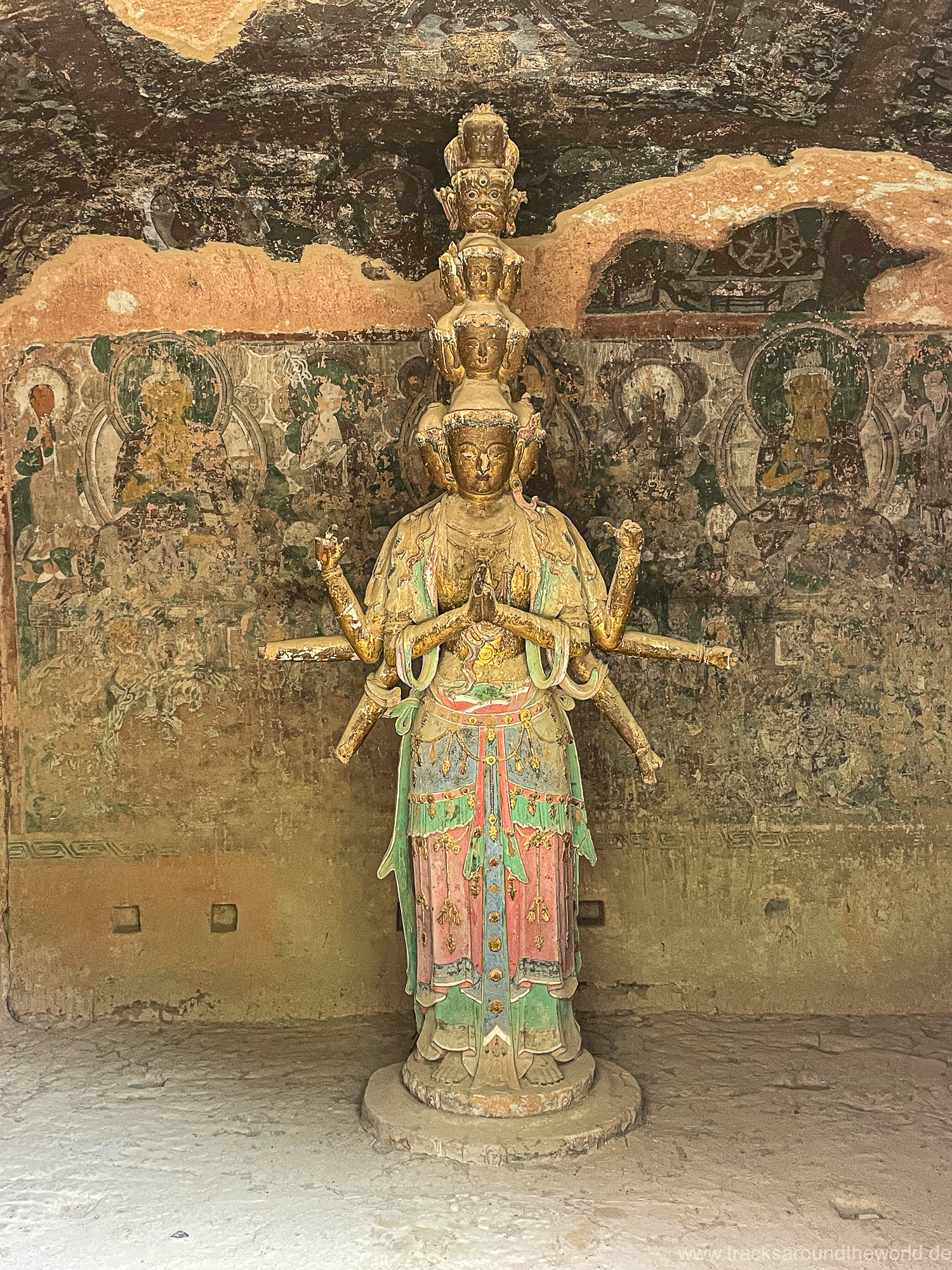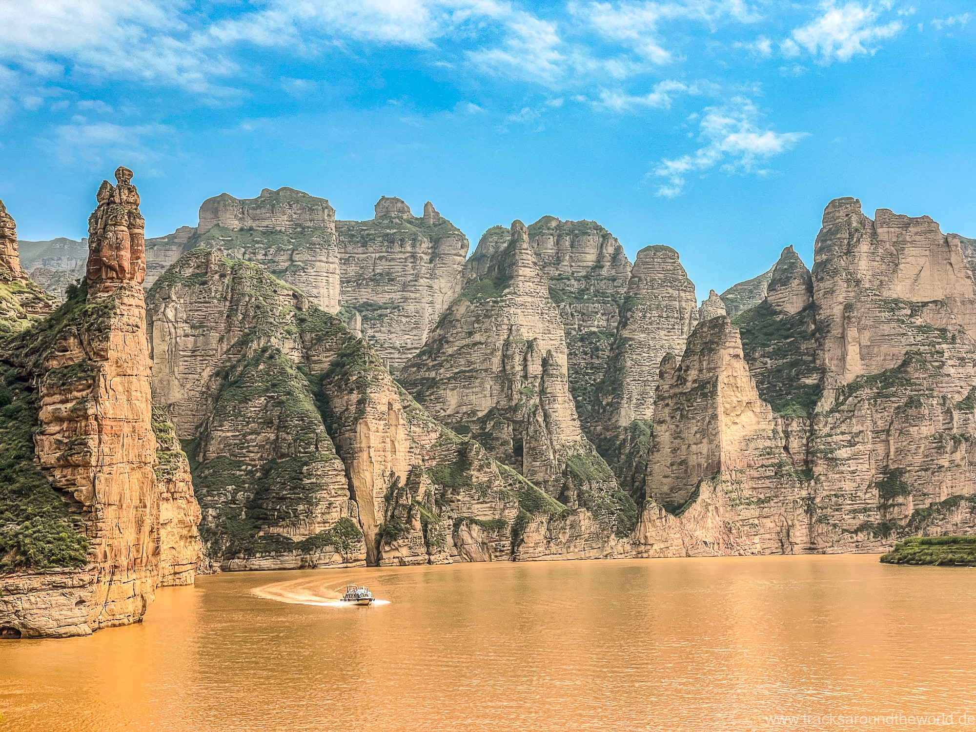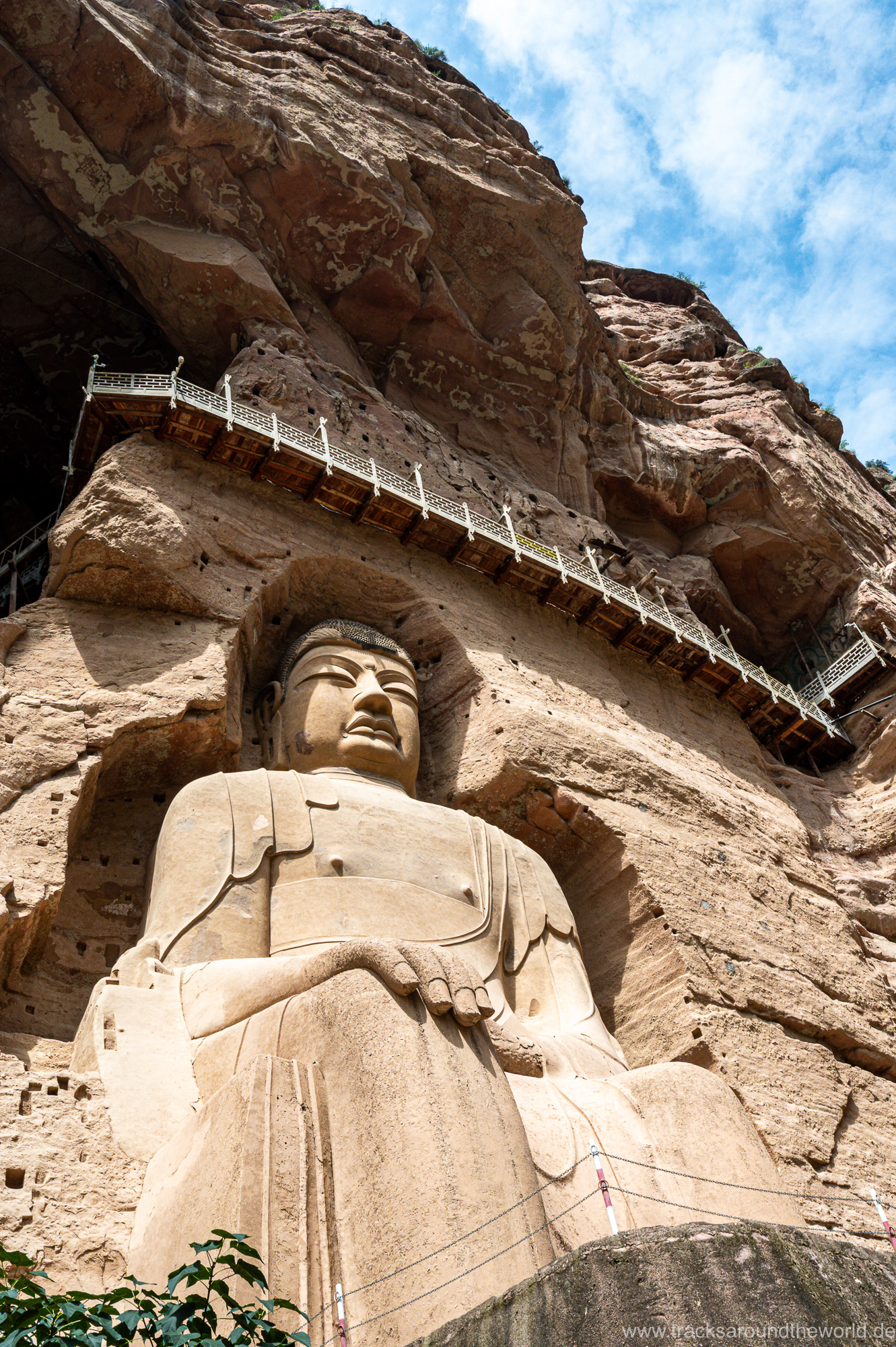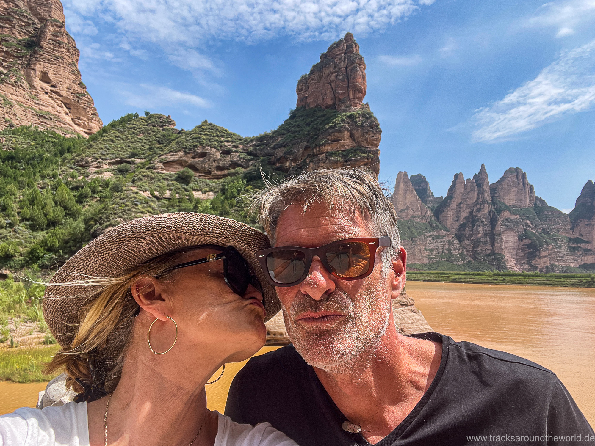 Ein Abstecher zu den Binglingsi Grotten bringt uns fast wieder in unsere normale Overlander-Welt zurück: eine tolle und spektakuläre Anfahrt an diese sehr entlegene Lokation und ein ruhiger und einsamer Stellplatz ohne Reisebusse und Infrastruktur! Die Grotten selbst mit ihren 183 buddhistischen Skulpturengrotten wurden seit dem 4. Jhd. in die steilen Wände einer Schlucht oberhalb des gelben Flusses geschlagen und – aufgrund der einsamen Lage – erst 1952 wiederentdeckt. Dementsprechend imposant ist die gesamte Szenerie. Vor allem die steilen Berge, zusammen mit dem durch die Schlucht rauschenden Fluss, hätten wir so eher in Südchina und nicht am Rand zu Tibet erwartet.