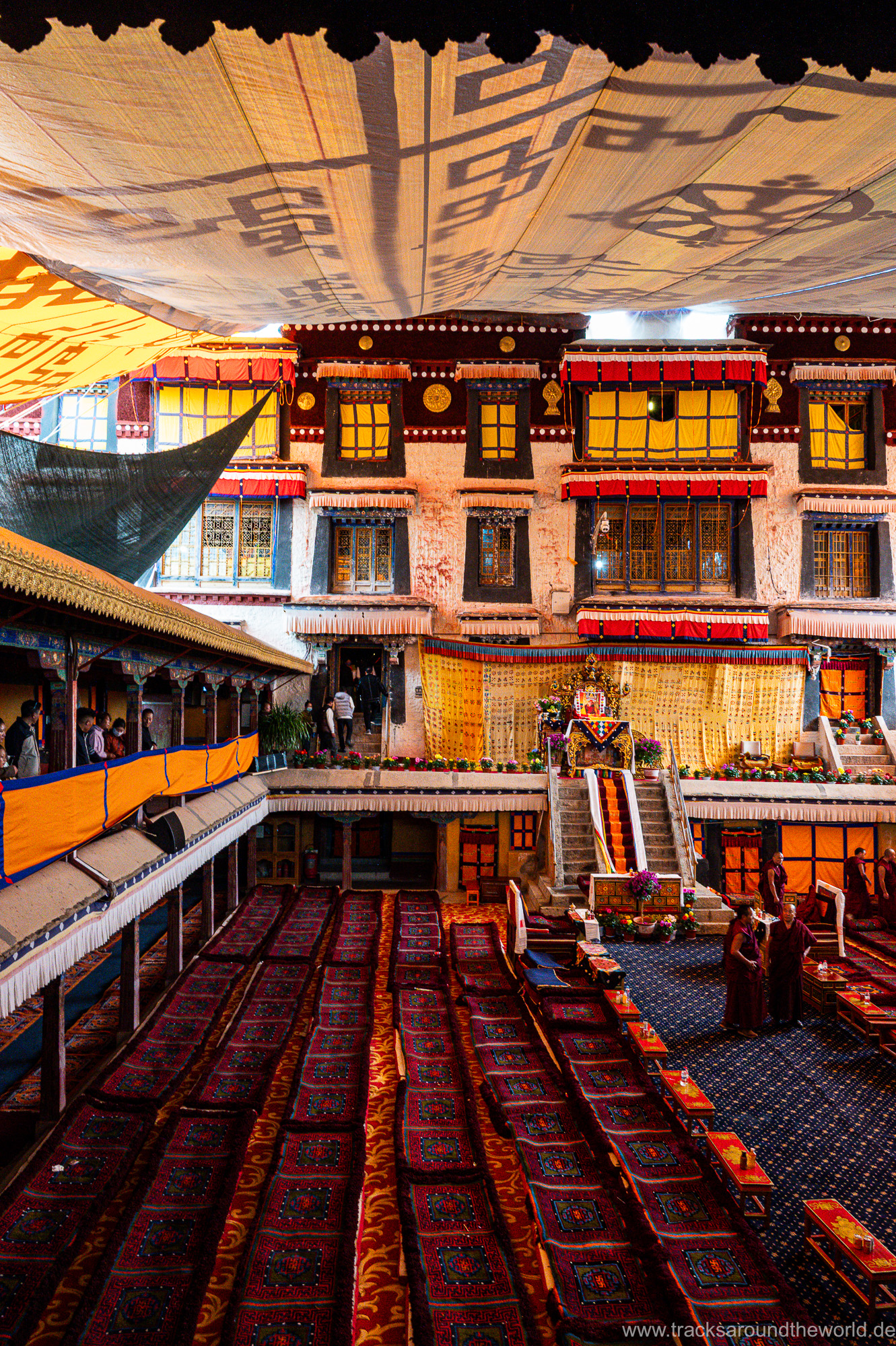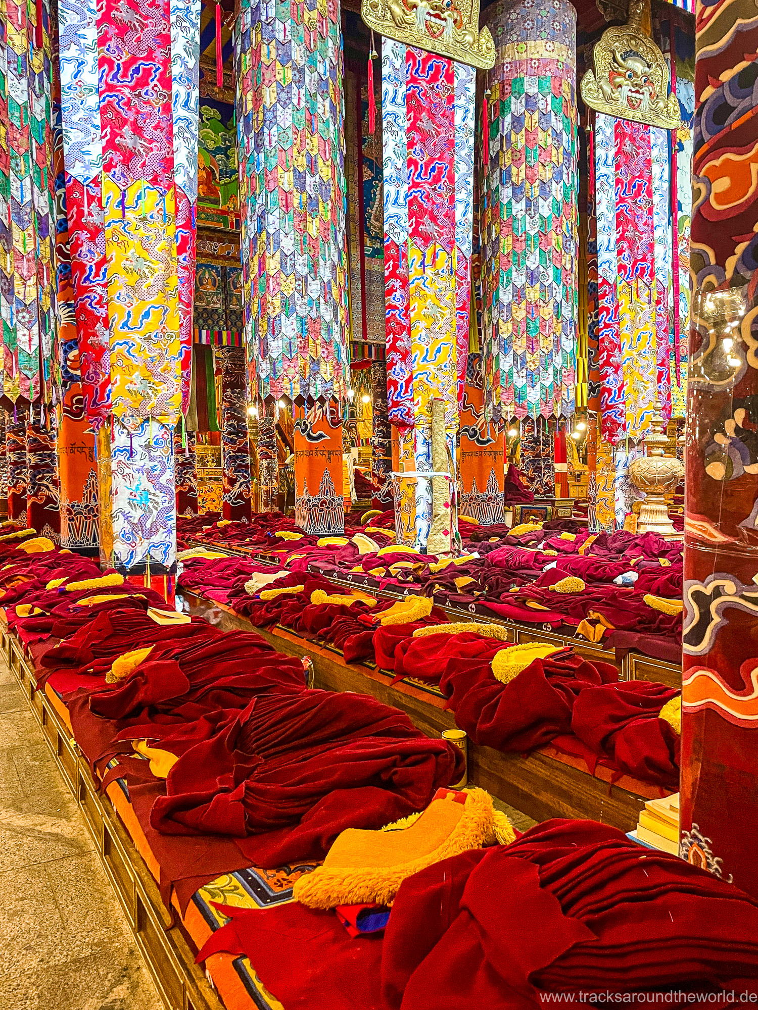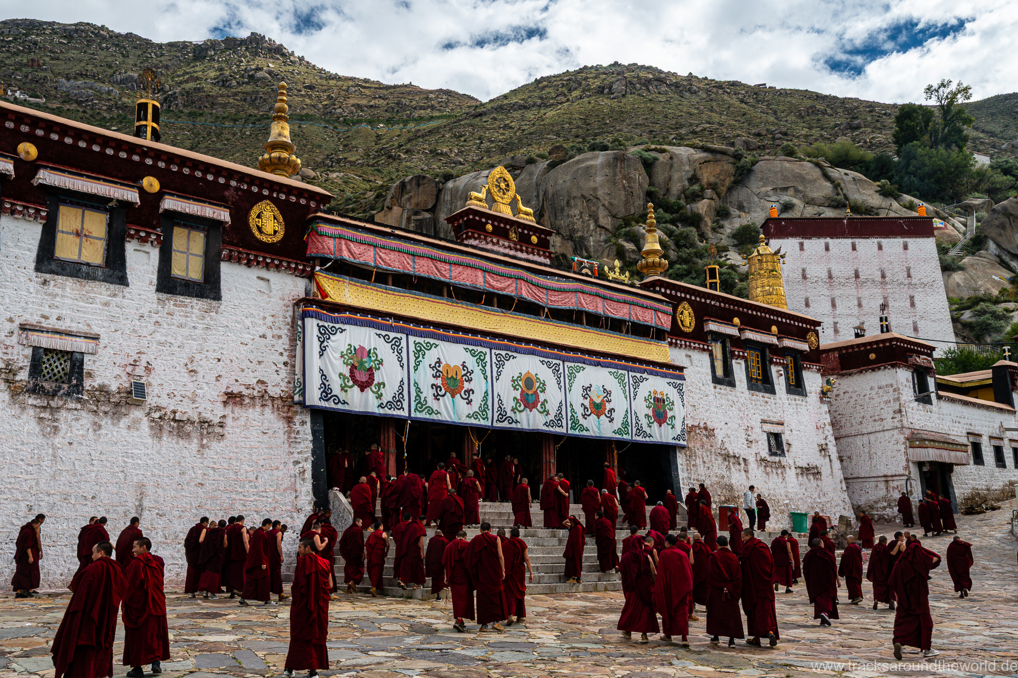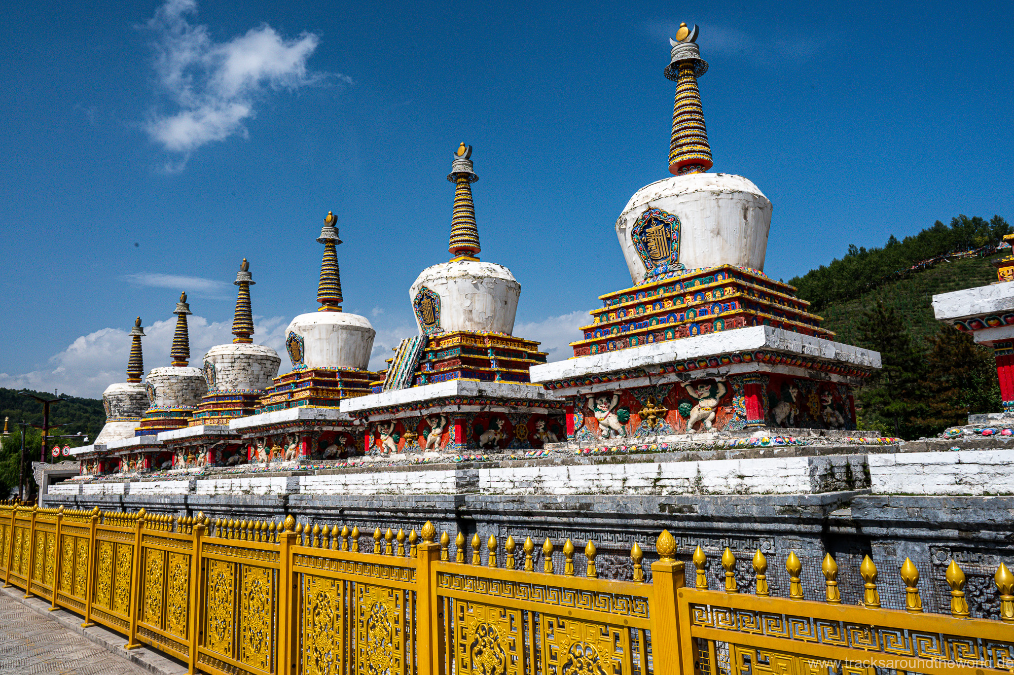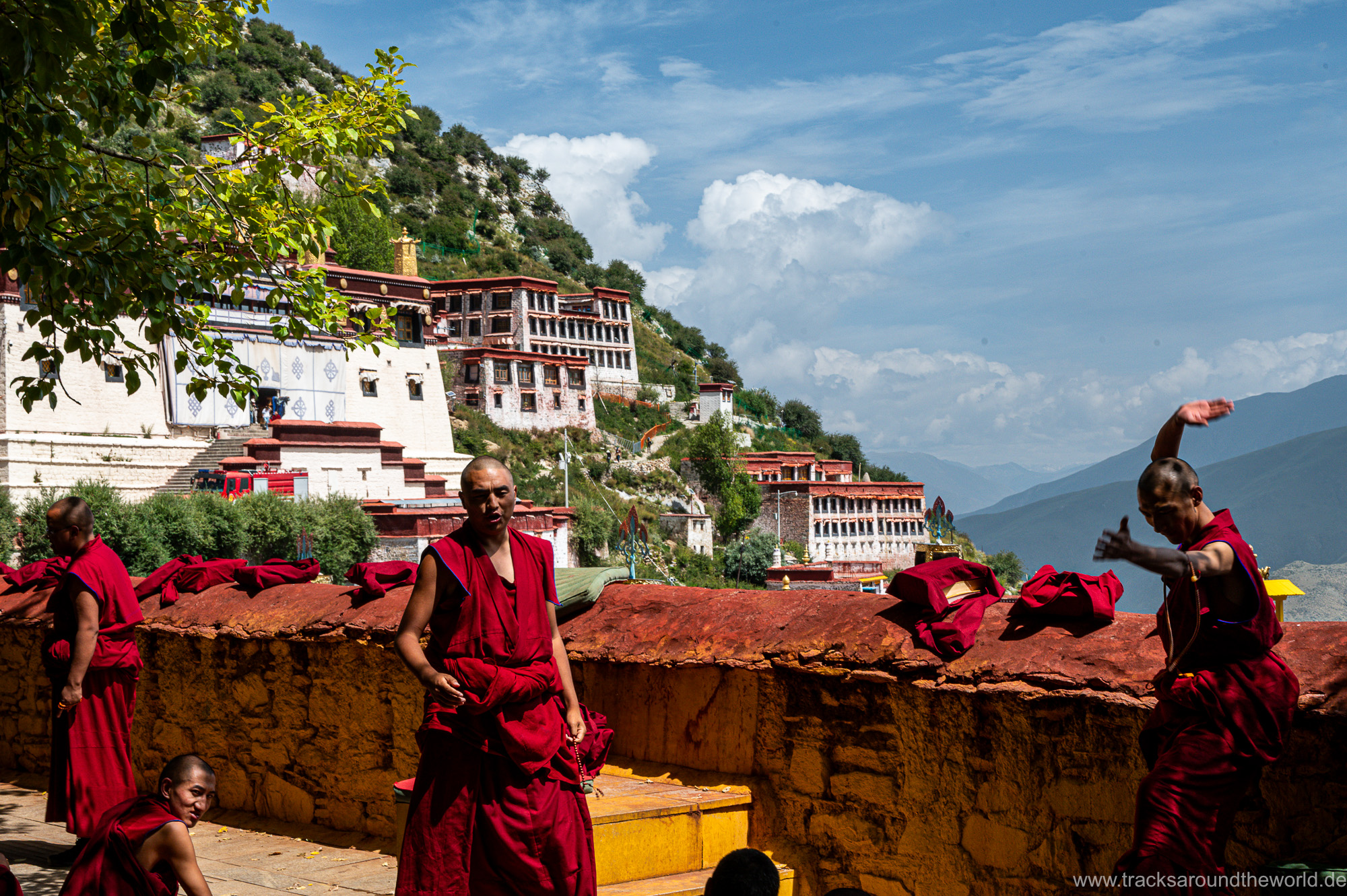 Noch bevor wir die eigentliche autonome Region Tibet (mit ihren ganzen Restriktionen für Reisende) erreichen, kommen wir durch immer stärker tibetisch geprägte Regionen: Mit den Klöstern Labrang und Kumbung besuchen wir die wichtigsten und größten buddhistischen Klöster außerhalb der tibetischen Kern-Provinz… faszinierend und eine völlig andere, viel kontemplativere Atmosphäre, vor allem mit den zahllosen Pilgern und praktizierenden Mönchen, welche die lärmenden chinesischen Touristen wohltuend in den Hintergrund drängen. Wir bekommen ein Vorgeschmack auf das, was uns im tibetischen Hochland noch erwarten wird, und freuen uns sehr!