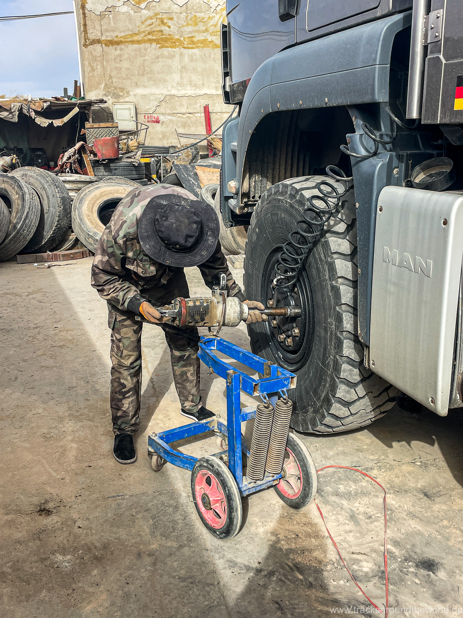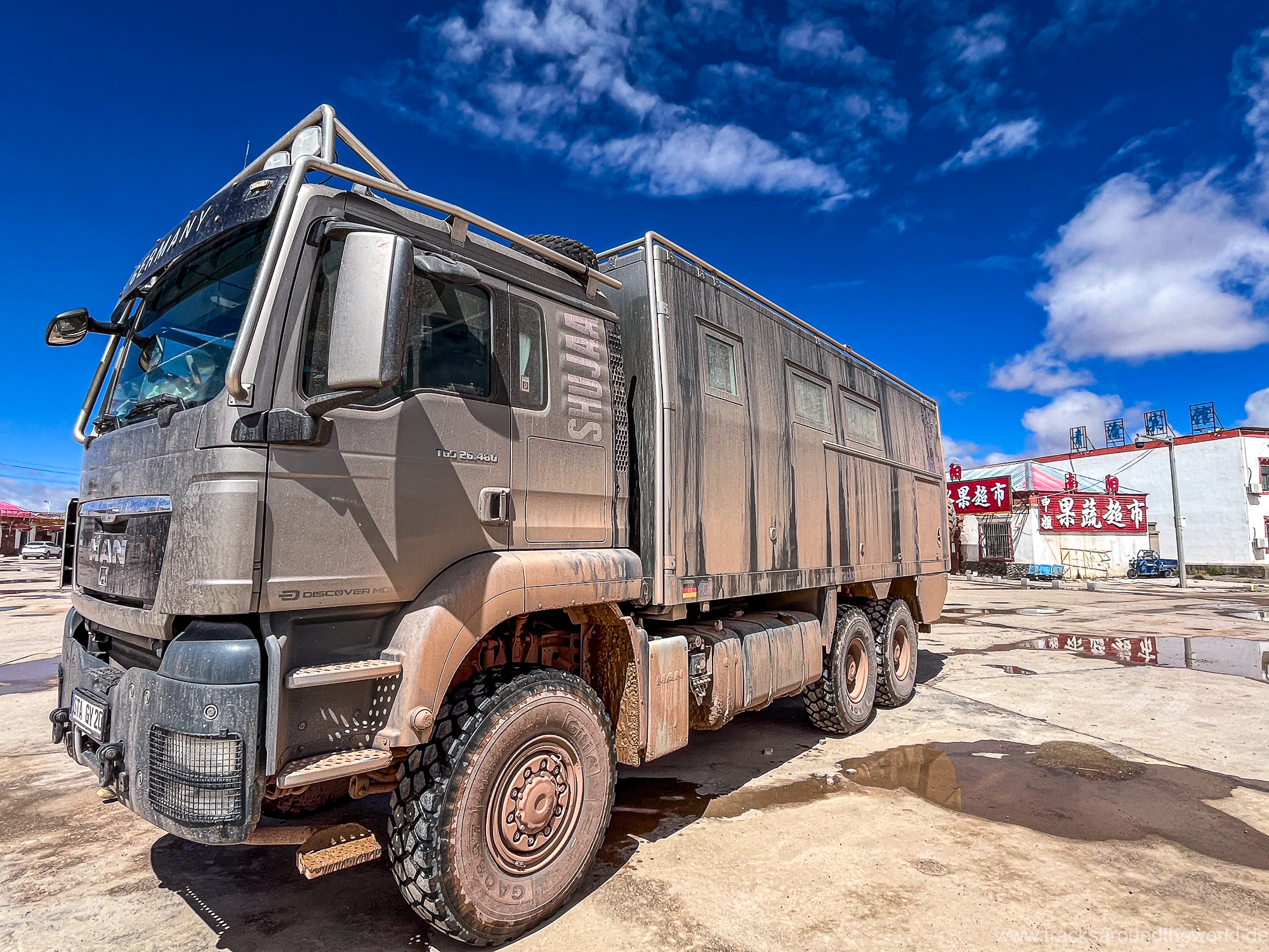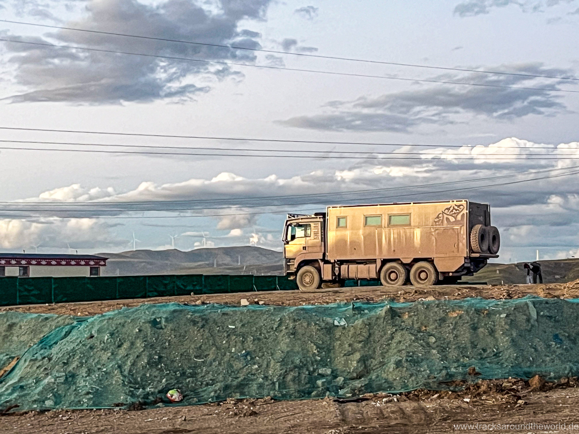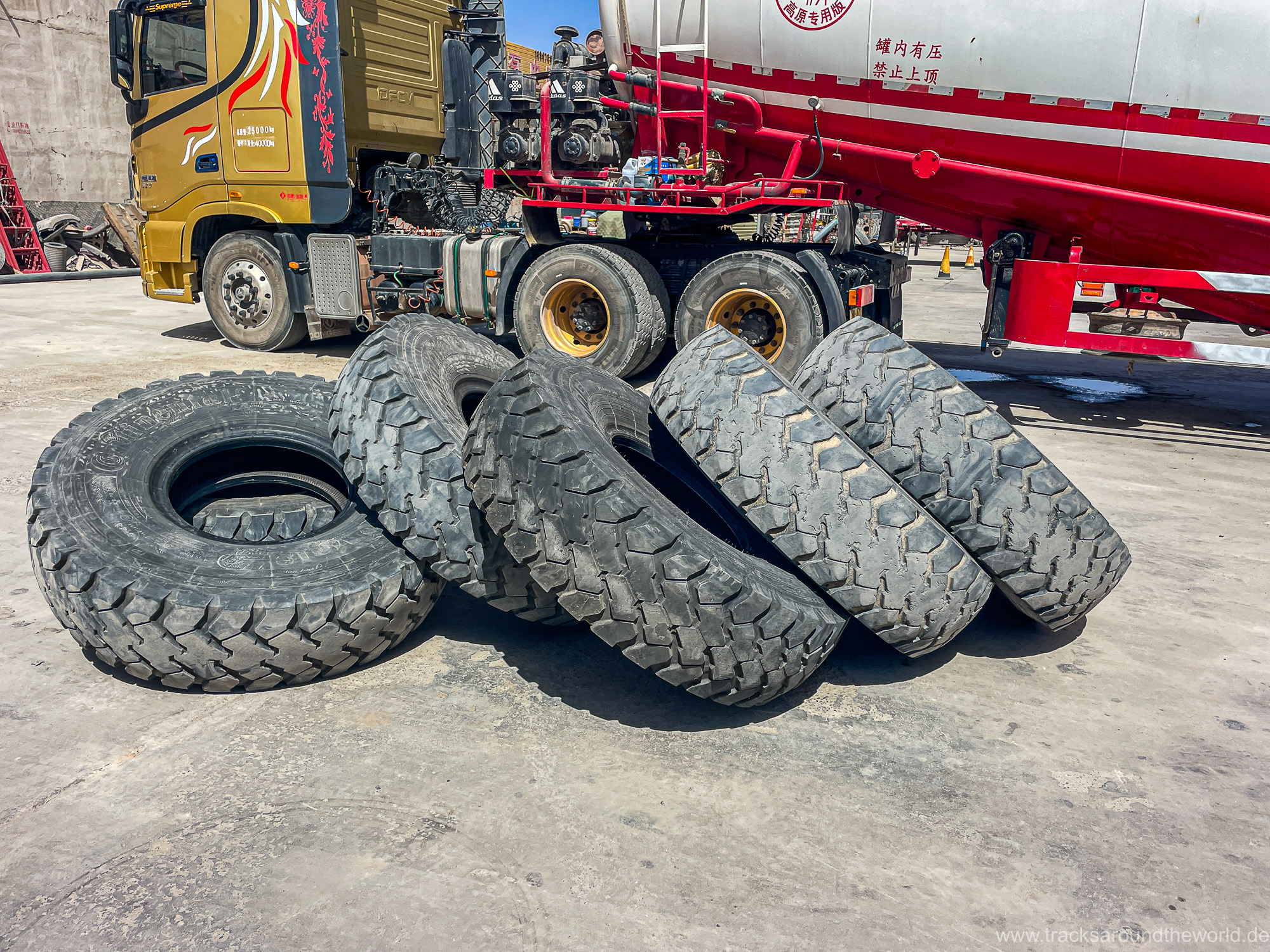 In Golmud wird es dann ernst. Zunächst lassen wir uns hier einen Satz neuer Reifen montieren: das Angebot unschlagbar günstig und ich bin gespannt, wie sich der chinesische Giti-Reifen im Vergleich zu unserem geschätzten Conti Reifen so schlagen wird. Zwar hätten die alten Reifen noch sicher 10.000 km gehalten, aber ein Ersatz in Indien bzw. später in Ost-Afrika wäre deutlich teurer gekommen. Wir treffen zudem die – wie sich später rausstellen sollte – folgenschwere Entscheidung, unsere Tour, trotz nach wie vor geschlossener Landgrenzen von Tibet nach Nepal (beide Grenzen sind wegen Erdrutschen immer noch gesperrt), wie geplant fortzusetzen. Wir können uns nicht vorstellen, dass diese beiden, auch für den Warenverkehr strategisch wichtigen Grenzübergänge noch viel länger unpassierbar sein sollten. Zudem geht die Monsun-Saison dem Ende zu, weswegen die Ursache für die Erdrutsche wegfallen sollte. Soweit unsere Logik…