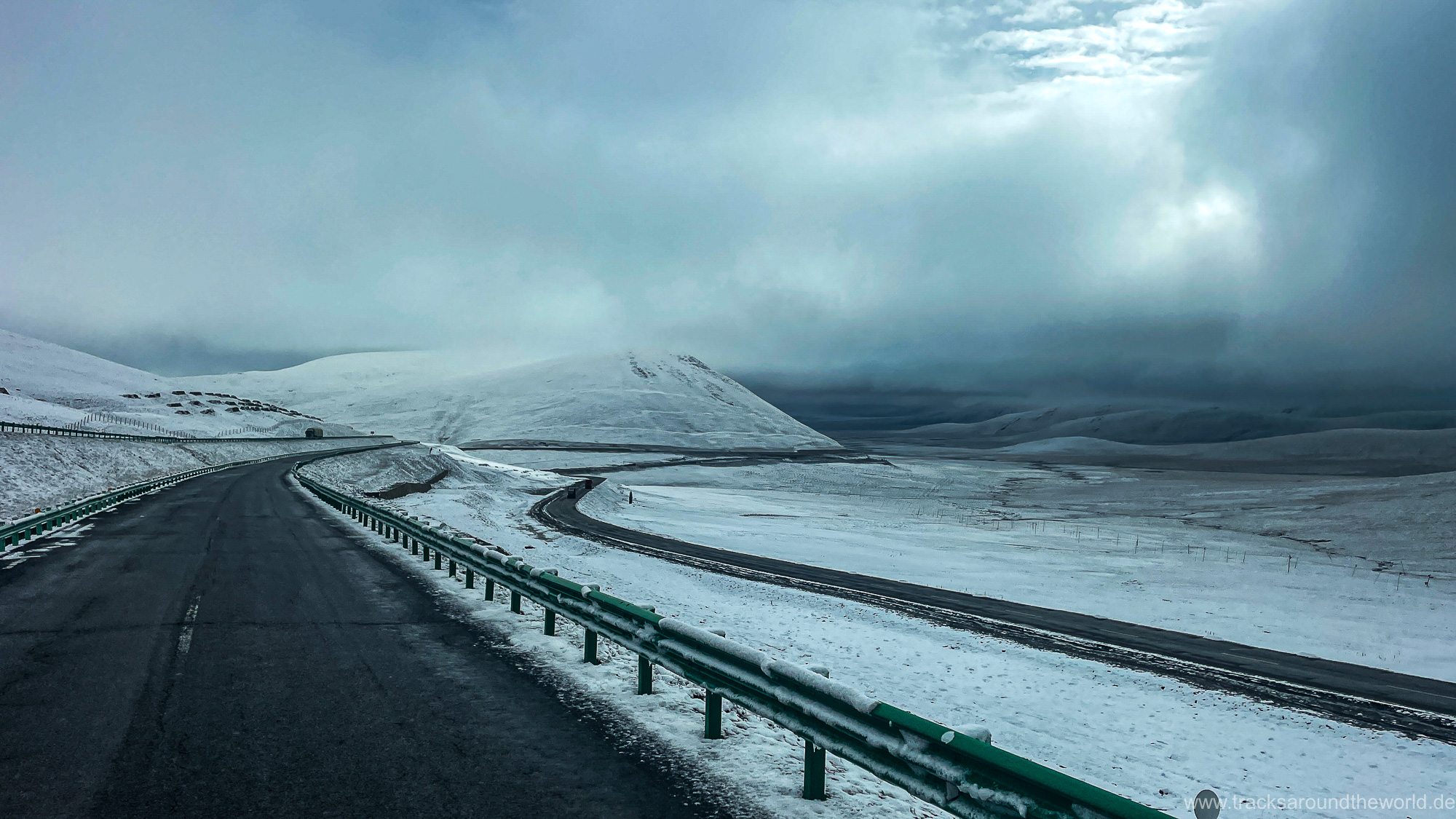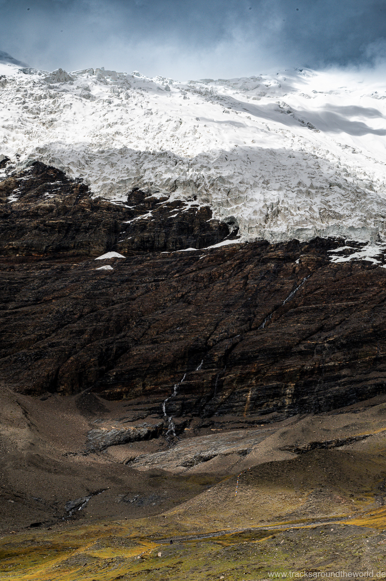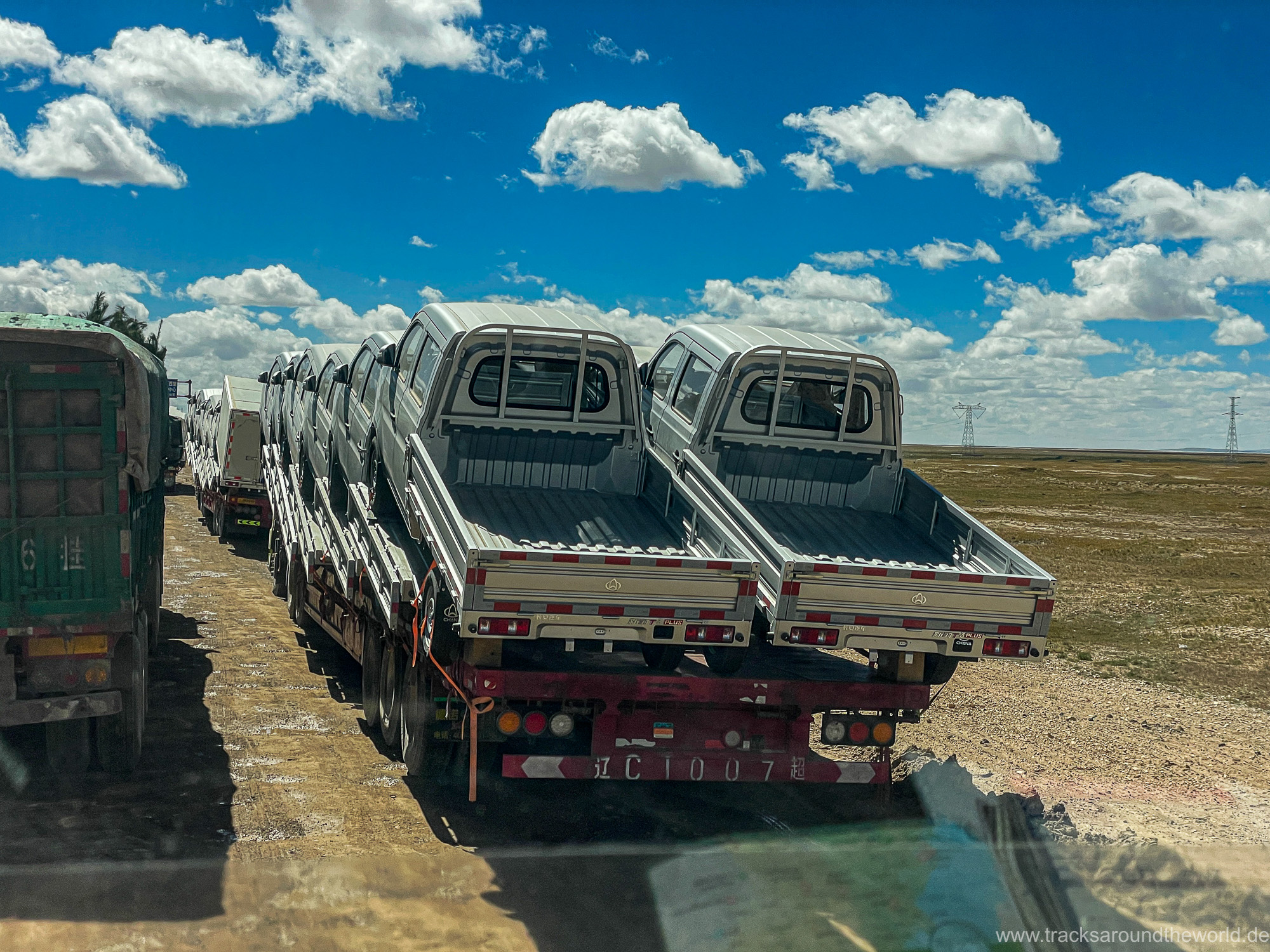 Die final dann sehr schweren Herzens, aber schlussendlich alternativlos angetretene Rückreise von Tibet auf einer anderen Route ist etwas besser als die Hinreise, aber immer noch eine wahre Herausforderung! Unglaublich, dass ein Land mit einer ansonsten so perfekten und modernen Infrastruktur wie China es nicht geschafft hat, die einzigen drei Straßen-Routen nach Tibet vernünftig auszubauen und damit ein riesiges Nadelöhr geschaffen hat: die LKWs stauen sich zu Tausenden und die chinesischen Touristen lassen einfach ihr eigenes Auto nach dem Tibet Road-Trip per LKW zurücktransportieren und fliegen selbst zurück… Schade, aber dieses Abenteuer werden wir lange nicht vergessen!