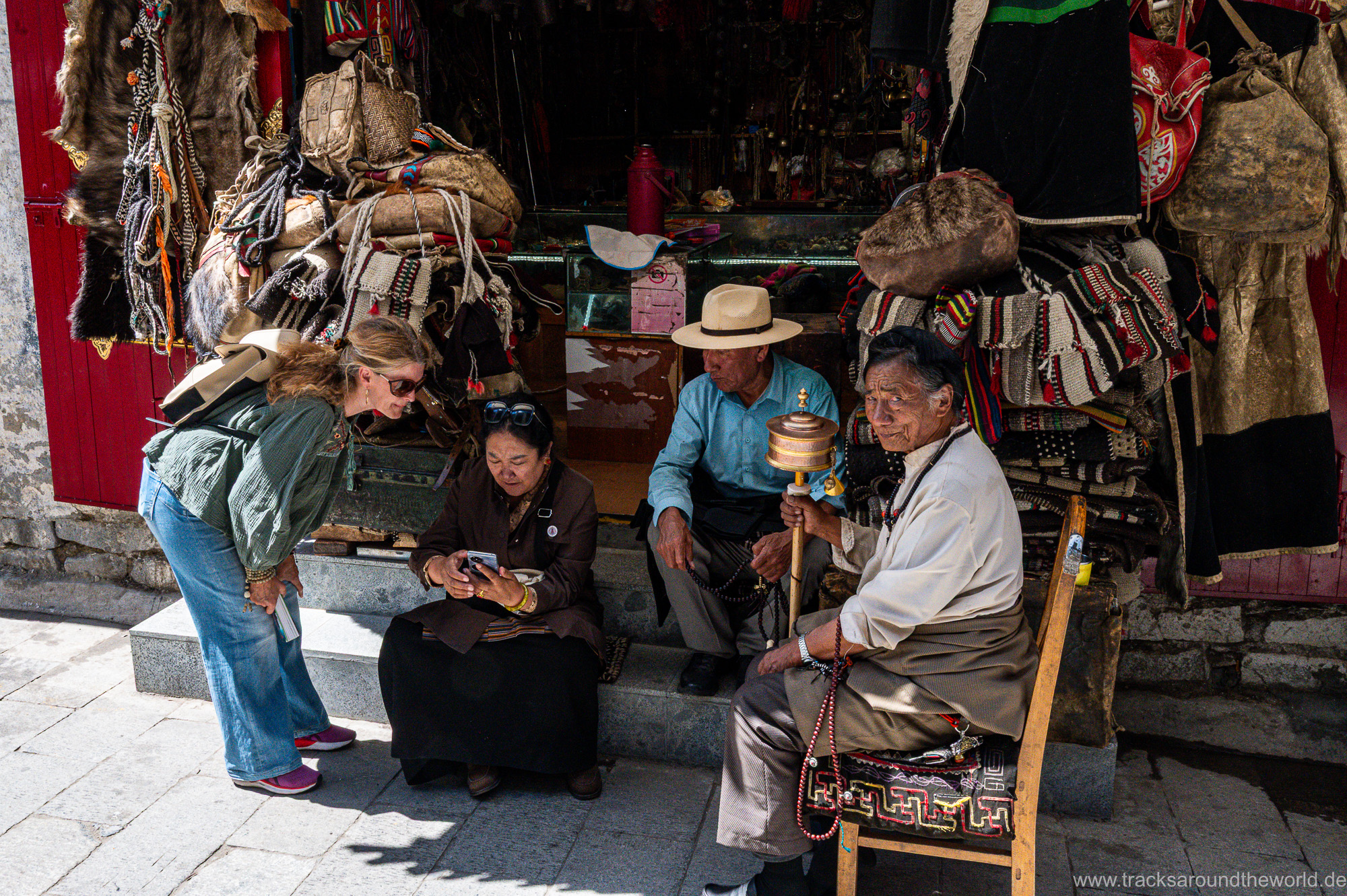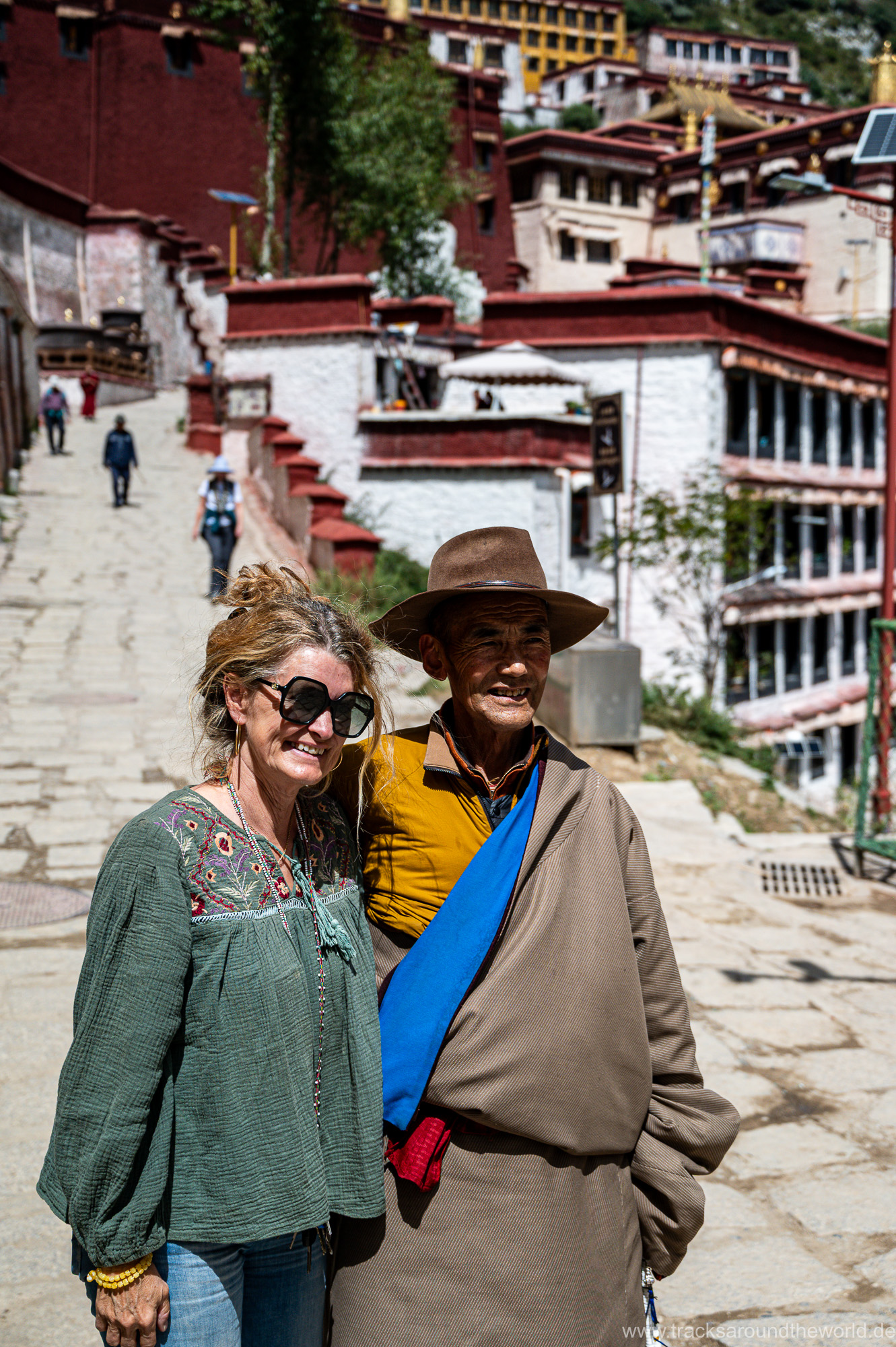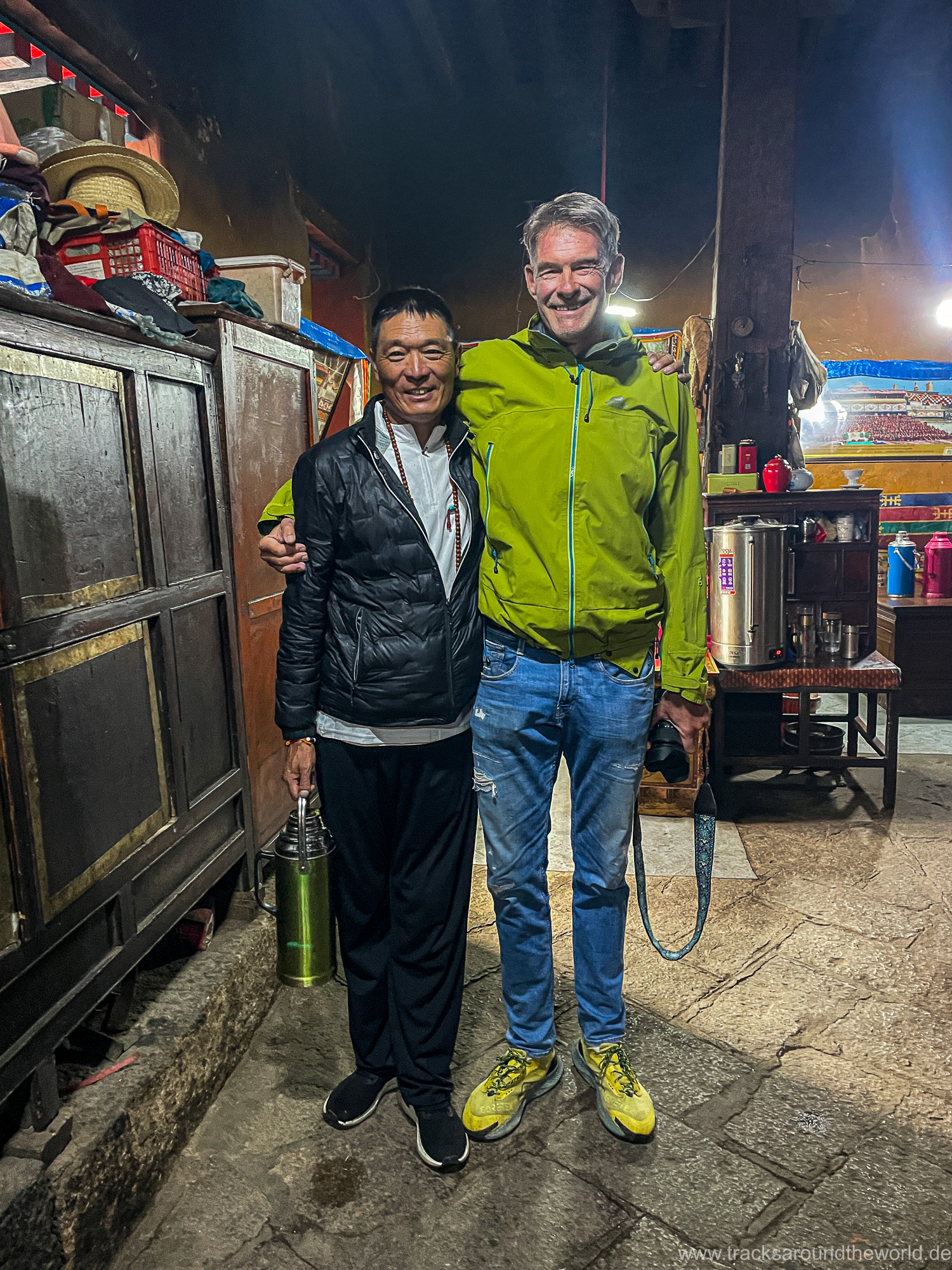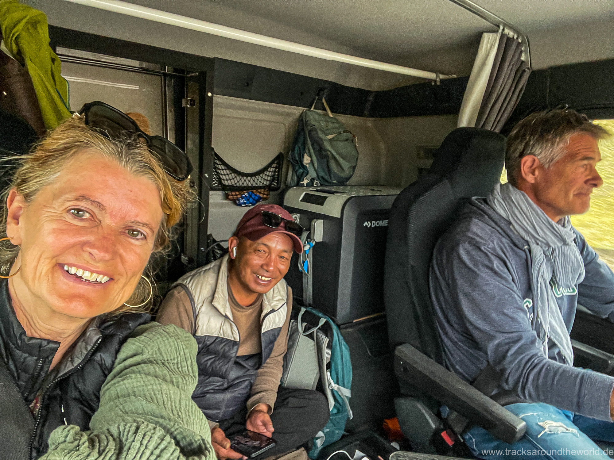 Am Morgen der Abfahrt in die autonome Region Tibet stößt unser obligatorischer Guide zu uns: schnell wird klar, dass es mit ihm sehr anstrengend wird. Sein Englisch ist sehr schlecht und eine Kommunikation jenseits von seinen angelernten Standard-Aussagen daher nur schwer möglich. Sehr schade, hätten wir doch viele Fragen (die wir dann einfach Chat GPT stellen). Zudem ist er Kettenraucher… natürlich raucht er nicht im Fahrerhaus, wo wir zu dritt recht eng zusammensitzen, aber er riecht einfach extrem unangenehm. Zusätzlich muffeln seine Füße und die Schuhe, die er ab und zu ausziehen muss, wenn er in der Mitte sitzt. Am meisten regt uns jedoch seine Passivität auf: selbst um seine Hotelunterkünfte müssen wir uns kümmern (dabei ist er doch der lokale Guide und nicht wir!), weil er im Umgang mit Karten-Apps, Routenplanungen (im dünn besiedelten Tibet gibt es – völlig überraschend – nicht alle 10 km einen Ort mit Hotel!) etc. völlig unfähig ist. Es tut uns sehr leid, für ihn und für uns, dass wir ausgerechnet einen solchen „Volltreffer“ erwischt haben, obwohl wir uns schon seit Monaten vorgestellt haben, einen netten, gebildeten Tibeter als Travelbuddy aufnehmen zu können, weil wir eh einen Horror vor den Guidethema hatten.