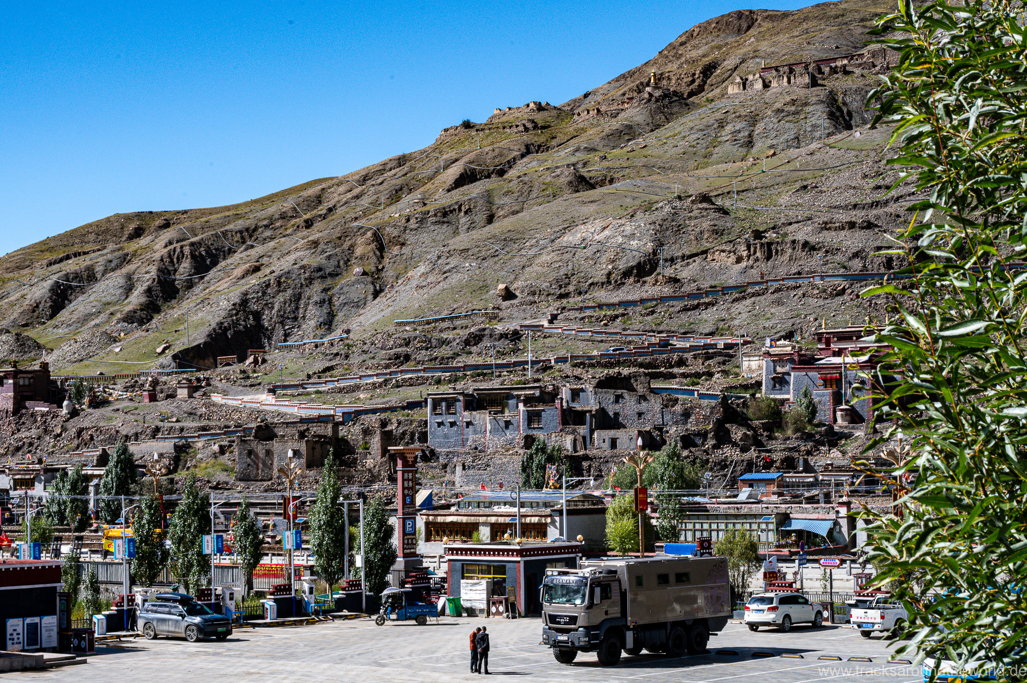 Hinzu kommt, dass unser Plan B (nicht Ausreise nach Nepal sondern eine über 11.000 km lange Rückreise mit Shujaa durch West-China, Kasachstan, Russland, Georgien, Türkei nach Europa) eine Verlängerung unserer Aufenthaltserlaubnis in China voraussetzt. Zwei Versuche in Tibet scheitern diesbezüglich, eine Verlängerung scheint nur in „Mainland-China“ möglich zu sein. All dies führt dazu, dass wir die traumhaften Landschaften und kulturellen Highlights Tibets nur bedingt genießen können und vor allem Karin sehr traurig darüber ist. Zweifelsohne eine Traumlokation, aber nicht unter diesen Umständen, die uns – wie eigentlich bisher noch nie auf unserer durchaus anspruchsvollen Weltreise – an die Grenzen unserer Leistungsfähigkeit bringen.