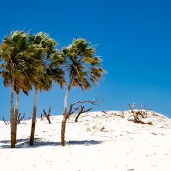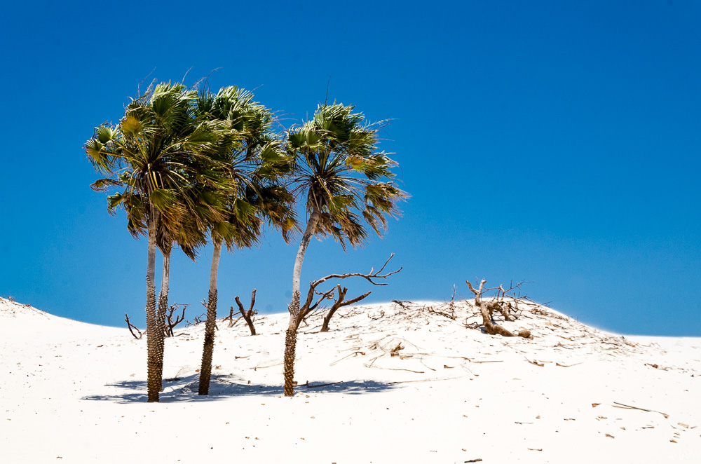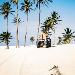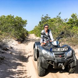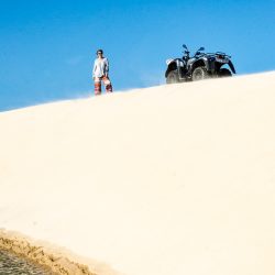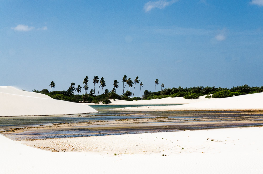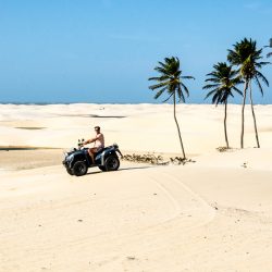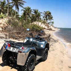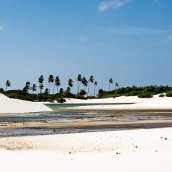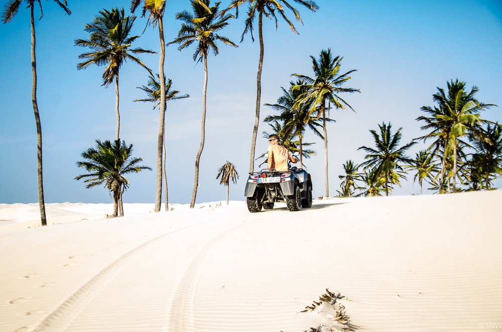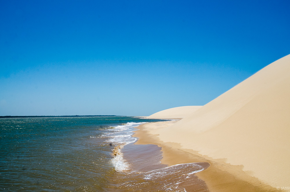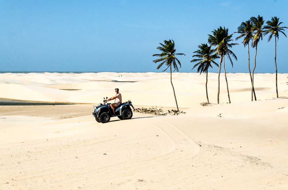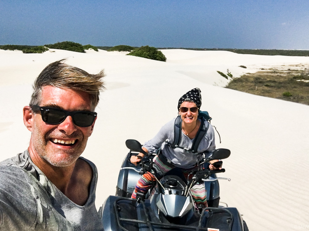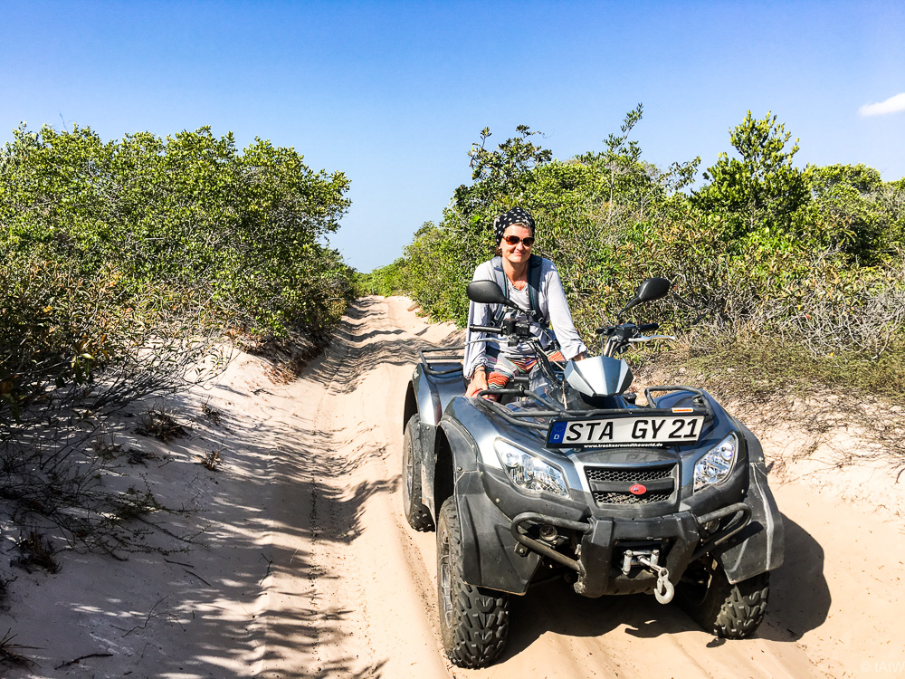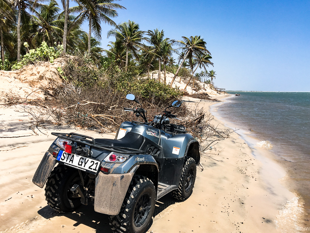 Continue to the Parnaíba Delta, also known as Delta de Americas, as it is the only real river delta in America and the third largest in the world (after the Nile and the Mekong delta). From the beautifully situated Poussada Jagata right in Tutóia, on the river delta, we make exploratory tours to the “small” Lençois Maranhenses with Shujoo. Again we are very happy that we have a quad, especially in these deep sandy areas, this is the ideal means of transportation to drive much more relaxed than with our Shujaa. If we get stuck in the deep sand, we can simply dig out or push it out with our hands without any problems or aids. Also, a day trip by boat into the delta should not be missed, with great fish lunch on a small island in the middle of the delta, with mangrove swamps and islands that consist only of dunes. Everywhere the atmosphere is very relaxed and chilled and we feel right as on vacation. We like Brazil very well so far, but the North-East has to be a completely different country than further south, which is confirmed by a nice couple, Nathalia and Lucas, from São Paulo, whom we met.