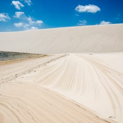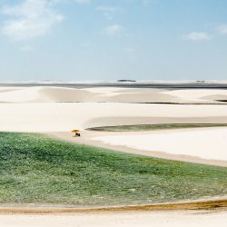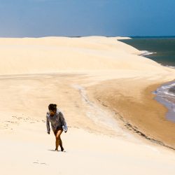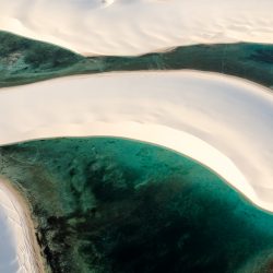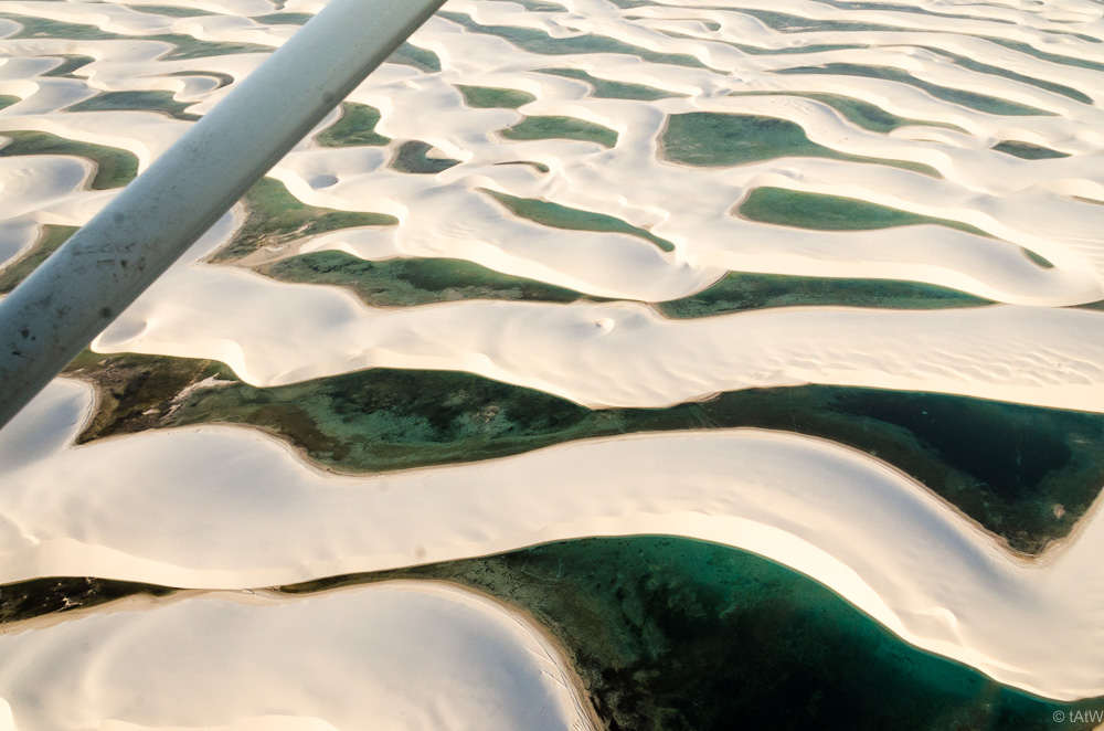The desert area of Lençois Maranhenses is considered the highlight in northern Brazil. Truly, the dunes are interspersed with hundreds of freshwater lagoons that fill in the rainy season from January to May, and then dry out in the dry season, a spectacular nature experience. In the north-west of the National Park of Santa Amaro we take a boat trip to different lagoons, drive in the south-east of the parks of Barreirinhas with our Quad Shujoo on deep slopes to the remote fishing village of Atins, which lies in the middle of the dunes and finally make an evening Flight in a single-engine Cessna over the entire dune area. Only then we really become aware of the real extent of the area and the fascinating beauty. So that we can take better pictures, we ask the pilot to build a door … which optimizes the view, but significantly increases the turbulence in filming and photographing … and raises the adrenalin level. To look into the depths without a door, only secured by a relatively loose seat belt. But an absolute highlight!