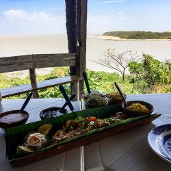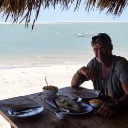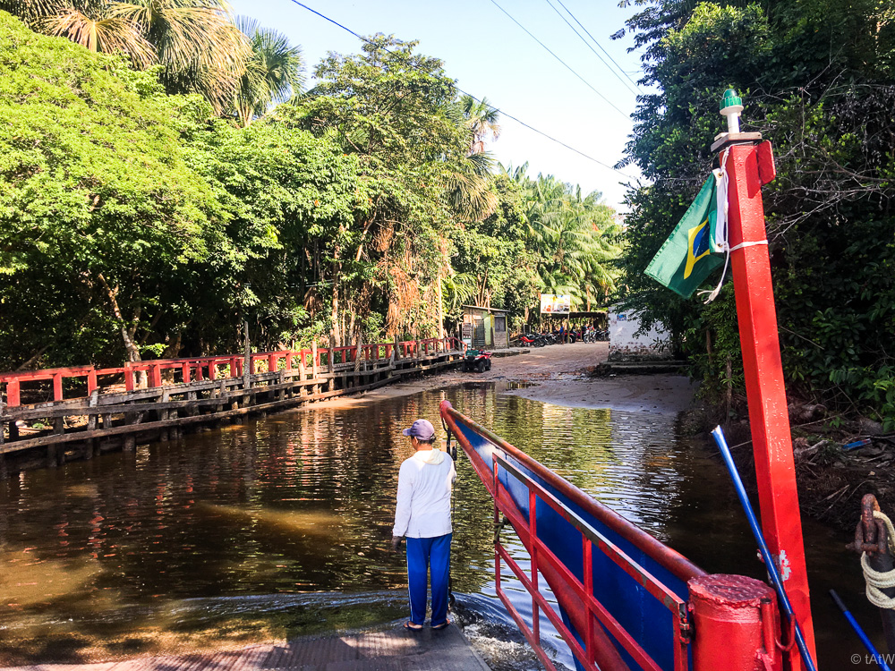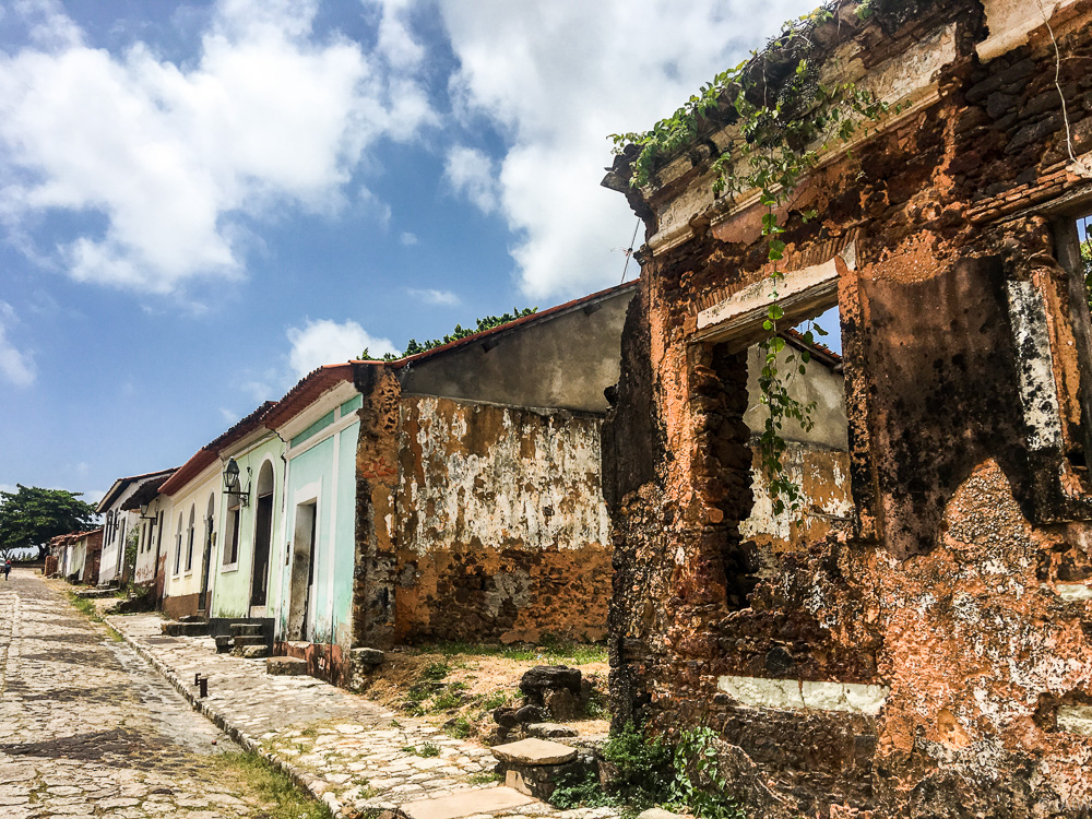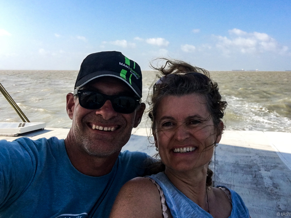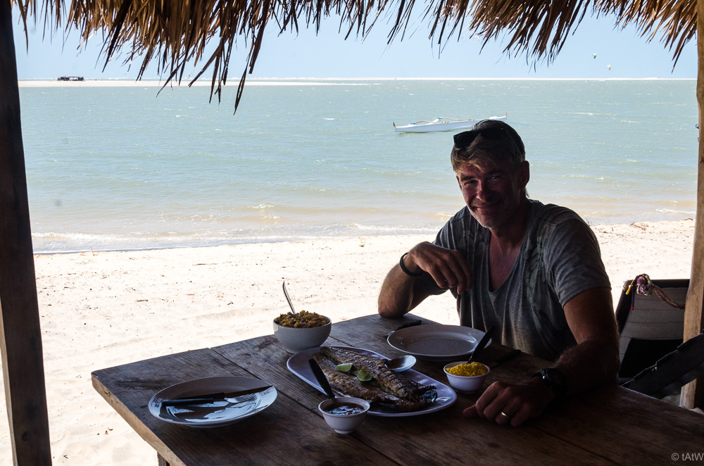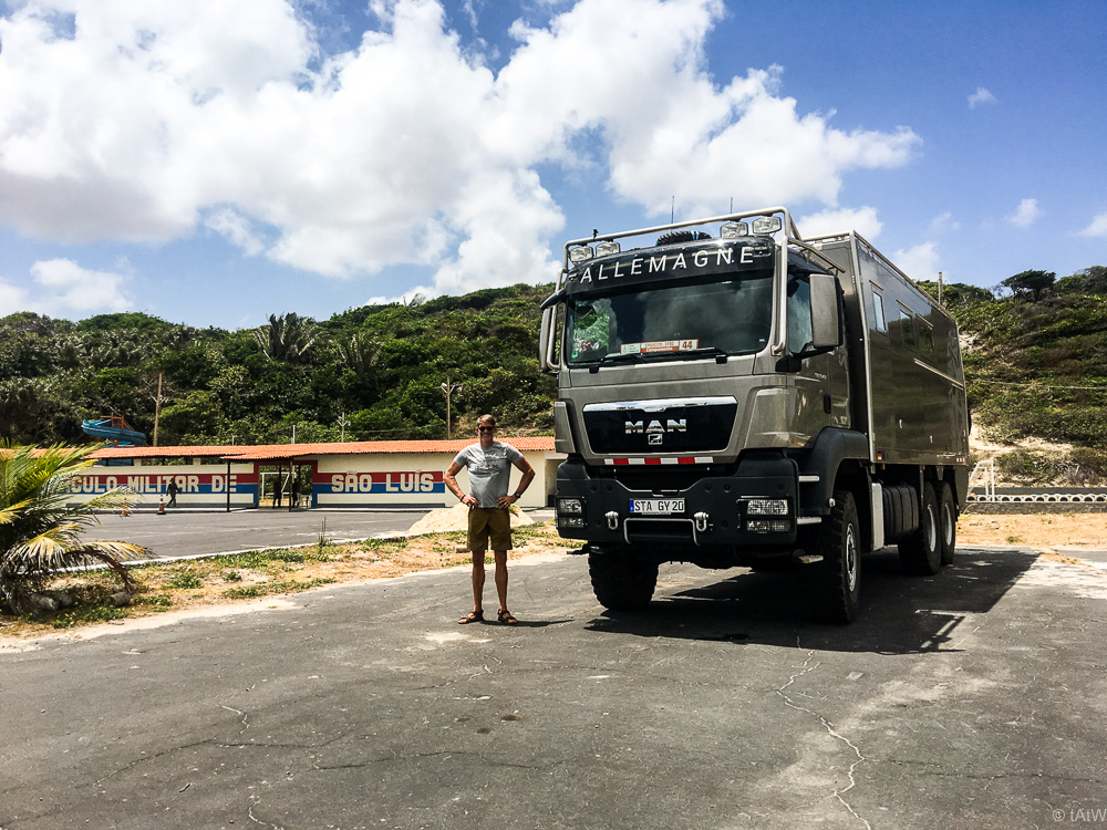 As soon as the stressful Transamazonica is over and Shujaa undergoes a thorough wash – which this time lasted a little longer than usual – begins the longed-for relaxation. Our first point of contact on the coast of north-east Brazil is São Louís – where, thanks to Captain Lima, we can be on the beach on the recreational grounds of the local military well-cared for. The old town of São Louís is a UNESCO World Heritage Site, has much morbid charm and is characterized by a very strong Portuguese influence, although originally founded by the French. We also go out nice, with the parents of Captain Lima living there. We visit the village of Alcantara on the other side of the river with a sailing catamaran and get soaking wet during the crossing in extreme wind and high waves. The water here is muddy brown, because the tides are here from 7 meters with most pronounced in all of South America and due to the topography (ie large bay) which in turn rinses many sediments. The small town of Alcantara is a listed building and has about 300 historic buildings from the 17th and 18th centuries, where once the richest families of the province, some with over 8,000 slaves, lived. The place has indeed a great charm: despite the high heat, but at least strong winds, we explore the streets and old buildings. At noon we eat great fish in a small restaurant with a fantastic view of the sea and the offshore island. We are the only guests and it is cooked only for us, but the fish is better.